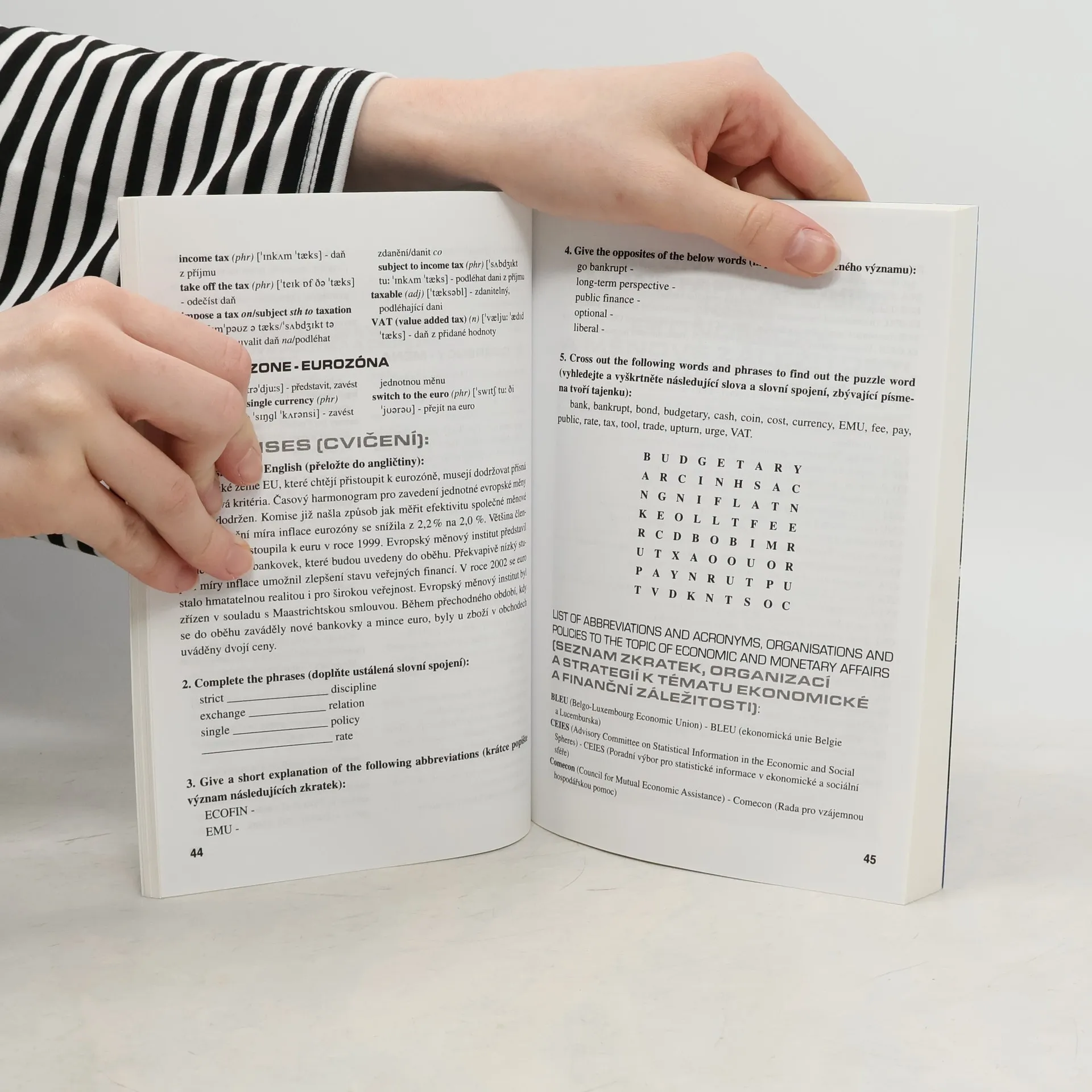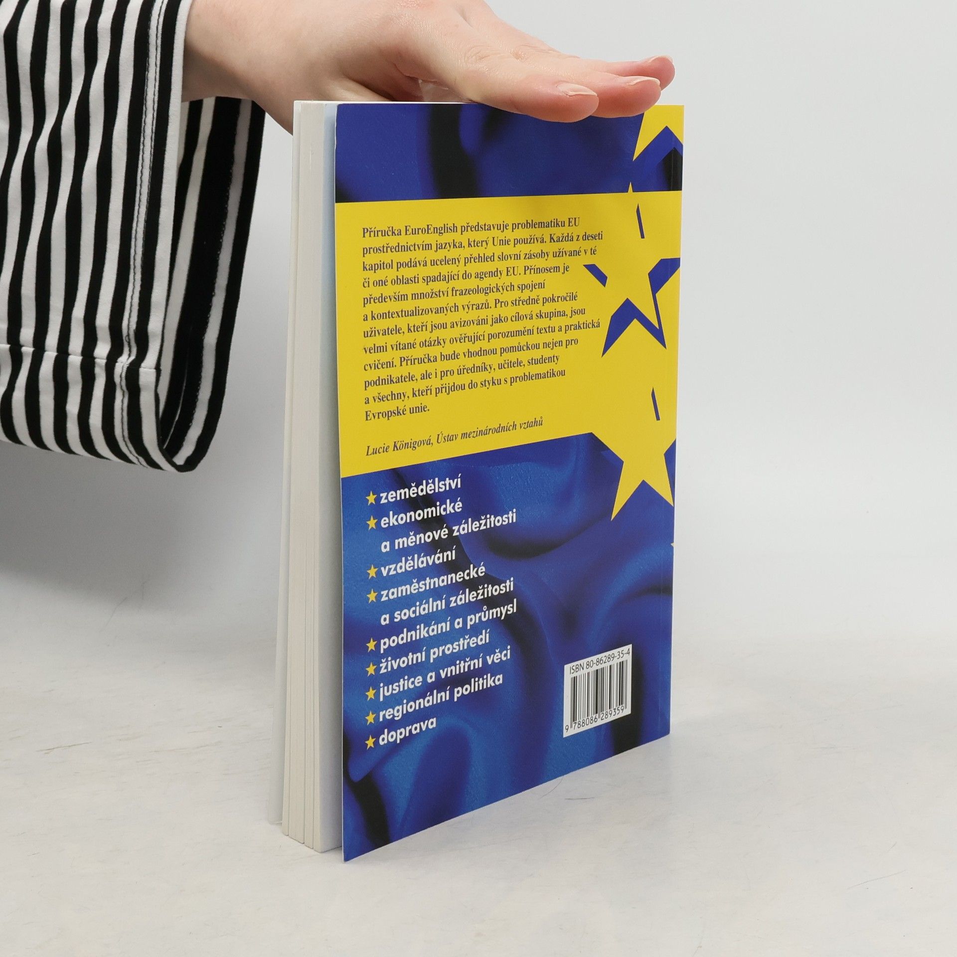 Příručka EuroEnglish představuje problematiku EU prostřednictvím jazyka, který Unie používá. Každá z deseti kapitol podává ucelený přehled slovní zásoby užívané v té či oné oblasti spadající do agendy EU (ekonomické a měnové záležitosti, podnikání a průmysl, zemědělství, vzdělávání, zaměstnanecké a sociální záležitosti, životní prostředí, justice a vnitřní věci, regionální politika, doprava). Přínosem je především množství frazeologických spojení a kontextualizovaných výrazů. Velmi vítané budou otázky ověřující porozumění textu a praktická cvičení. Příručka je vhodnou pomůckou nejen pro podnikatele, ale i pro úředníky, učitele, studenty a všechny, kteří přijdou do styku s problematikou Evropské unie. Zdroj: kosmas.cz
