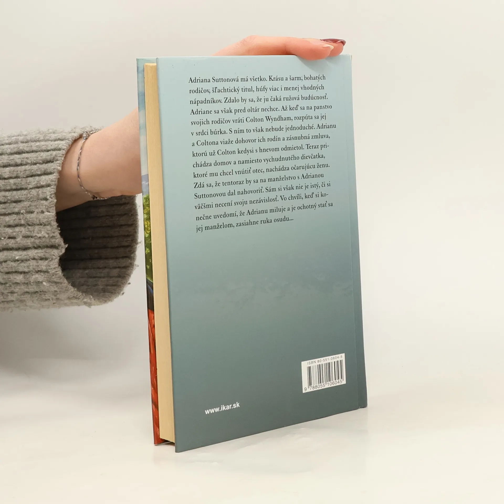 Adriana Suttonová má krásu a šarm, bohatých rodičov, šľachtický titul, húfy viac i menej vhodných nápadníkov. Zdalo by sa, že ju čaká ružová budúcnosť. Pred oltár sa jej však nechce. Až keď sa na panstvo svojich rodičov vráti Colton Wyndham, rozpúta sa v jej srdci búrka. Viaže ich ale dohovor rodín a zásnubná zmluva, ktorú už Colton kedysi s hnevom odmietol. Teraz prichádza domov a namiesto vychudnutého dievčatka, ktoré mu chcel vnútiť otec, nachádza očarujúcu ženu. Zdá sa, že tentoraz by sa na manželstvo dal nahovoriť. Sám si však nie je istý, či si väčšmi necení svoju nezávislosť. Vo chvíli, keď si konečne uvedomí, že Adrianu miluje a je ochotný stať sa jej manželom, zasiahne ruka osudu...