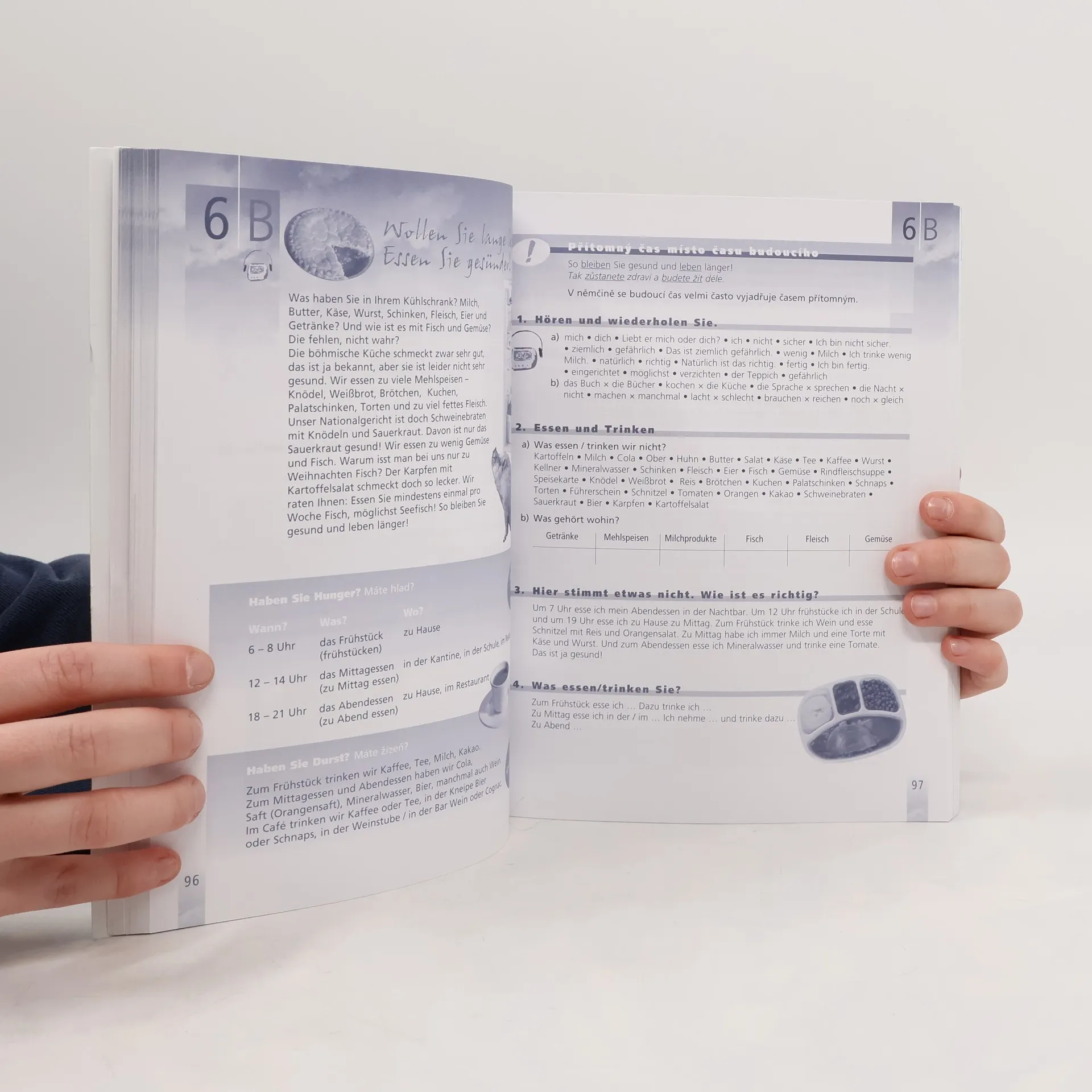 Němčina pro začátečníky. 1. díl učebnice obsahuje 15 lekcí rozdělených do částí A, B, C. V části A jsou úvodní texty dialogické, propojené volnou dějovou linií.