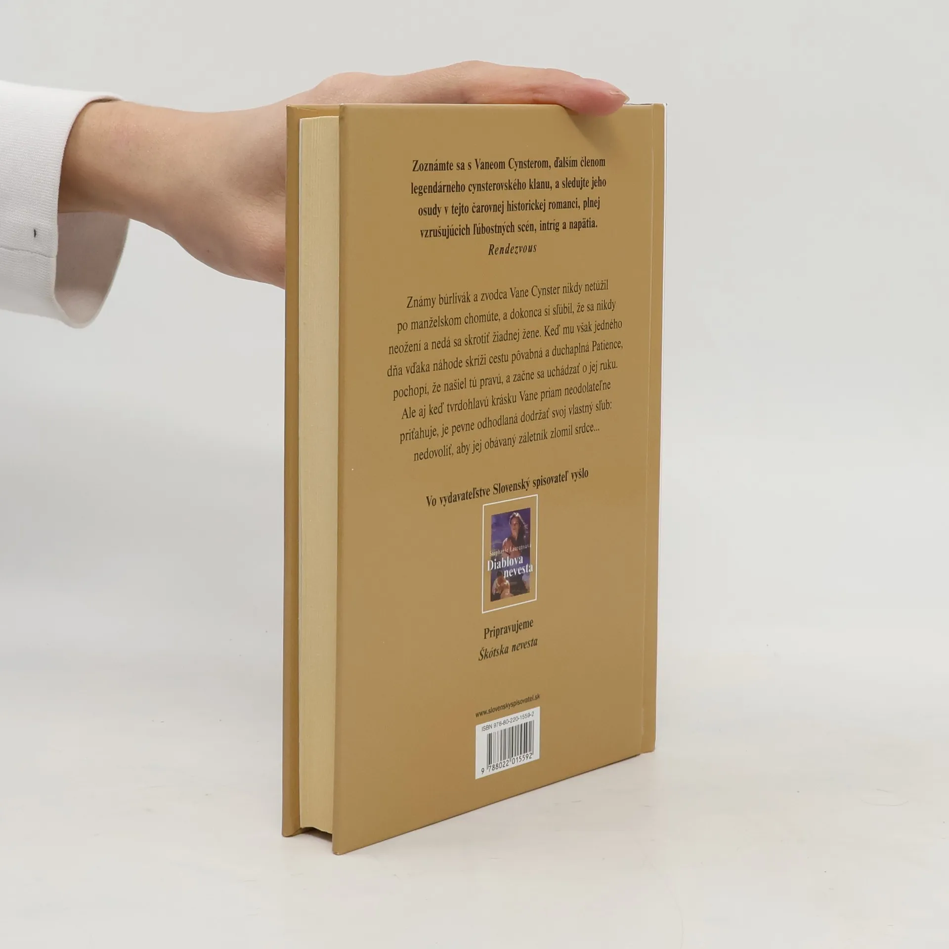 Po Diablovej neveste prichádza Stephanie Laurensová s ďalším dielom ságy legendárneho rodu Cynsterovcov. Známy búrlivák a zvodca Vane Cynster netúži po manželskom chomúte, ba dokonca si sľúbil, že sa nikdy neožení a nedá sa skrotiť žiadnej žene. Keď však jedného dňa spozná pôvabnú, duchaplnú, no poriadne tvrdohlavú Patience, pochopí, že našiel tú pravú, a začne sa uchádzať o jej ruku...
