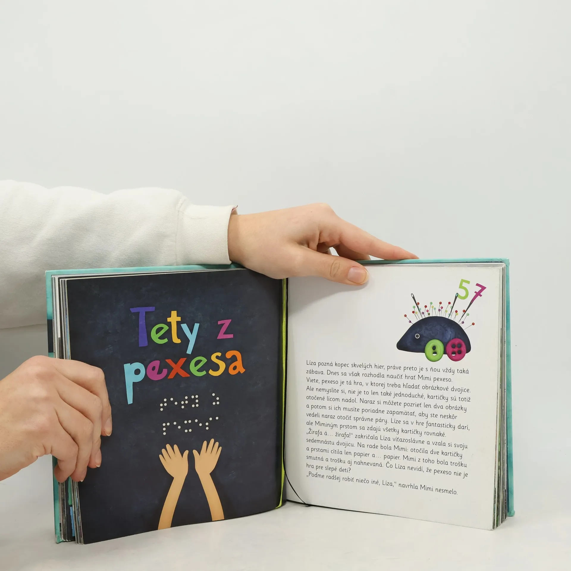 „V mojom meste sú všelijaké domy. Tehlové, kamenné, betónové. Niektoré sú hladké, iné majú zasa hrboľaté steny. Sú vysoké. Viem to, pretože vtáčiky, čo čvirikajú na strechách, počujem dosť slabo.“ Takto hovorí Mimi, ktorá žije vo svete za zavretými očami. No jej svet vôbec nie je nudný a čiernobiely. Spolu s neposednou Lízou spoznávajú susedov a prežívajú dobrodružstvá, kde zrak zrazu nie je taký dôležitý.