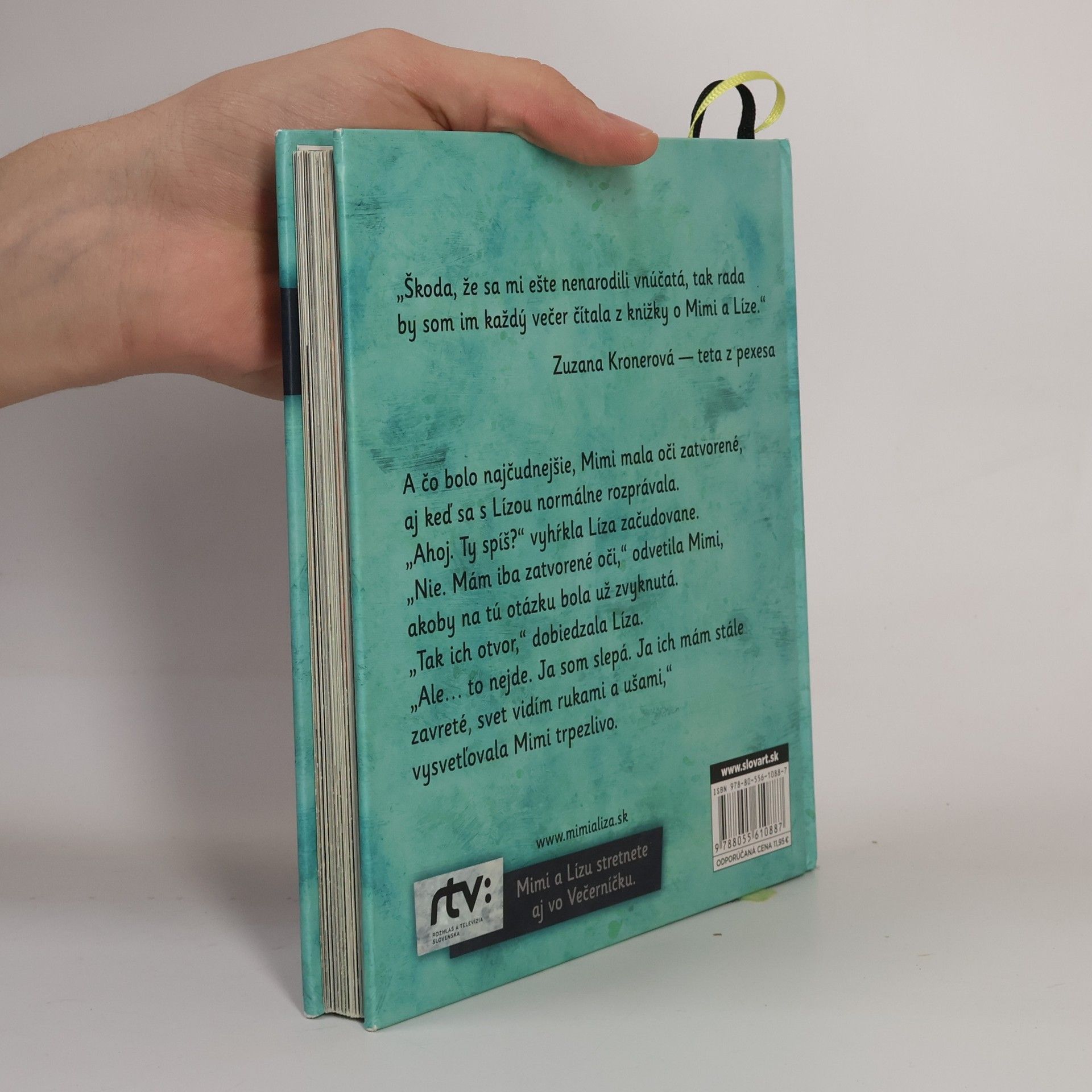 „V mojom meste sú všelijaké domy. Tehlové, kamenné, betónové. Niektoré sú hladké, iné majú zasa hrboľaté steny. Sú vysoké. Viem to, pretože vtáčiky, čo čvirikajú na strechách, počujem dosť slabo.“ Takto hovorí Mimi, ktorá žije vo svete za zavretými očami. No jej svet vôbec nie je nudný a čiernobiely. Spolu s neposednou Lízou spoznávajú susedov a prežívajú dobrodružstvá, kde zrak zrazu nie je taký dôležitý.