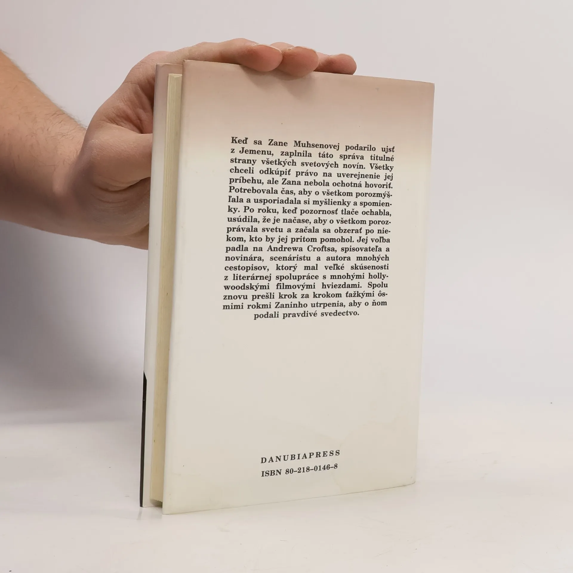 Keď sa Zane Muhsenovej podarilo ujsť z Jemenu, zaplnila táto správa titulné strany všetkých svetových novín. Všetky chceli odkúpiť právo na uverejnenie jej príbehu, ale Zana nebola ochotná hovoriť. Potrebovala čas, aby o všetkom porozmýšľala a usporiadala si myšlienky a spomienky. Po roku, keď pozornosť tlače ochabla, usúdila, že je načase, aby o všetkom porozprávala svetu a začala sa obzerať po niekom, kto by jej pritom pomohol. Jej voľba padla na Andrewa Croftsa, spisovateľa a novinára, scenáristu a autora mnohých cestopisov, ktorý mal veľké skúsenosti z literárnej spolupráce s mnohými hollywoodskymi filmovými hviezdami. Spolu znovu prešli krok za krokom ťažkými ôsmimi rokmi Zaninho utrpenia, aby o ňom podali pravdivé svedectvo.