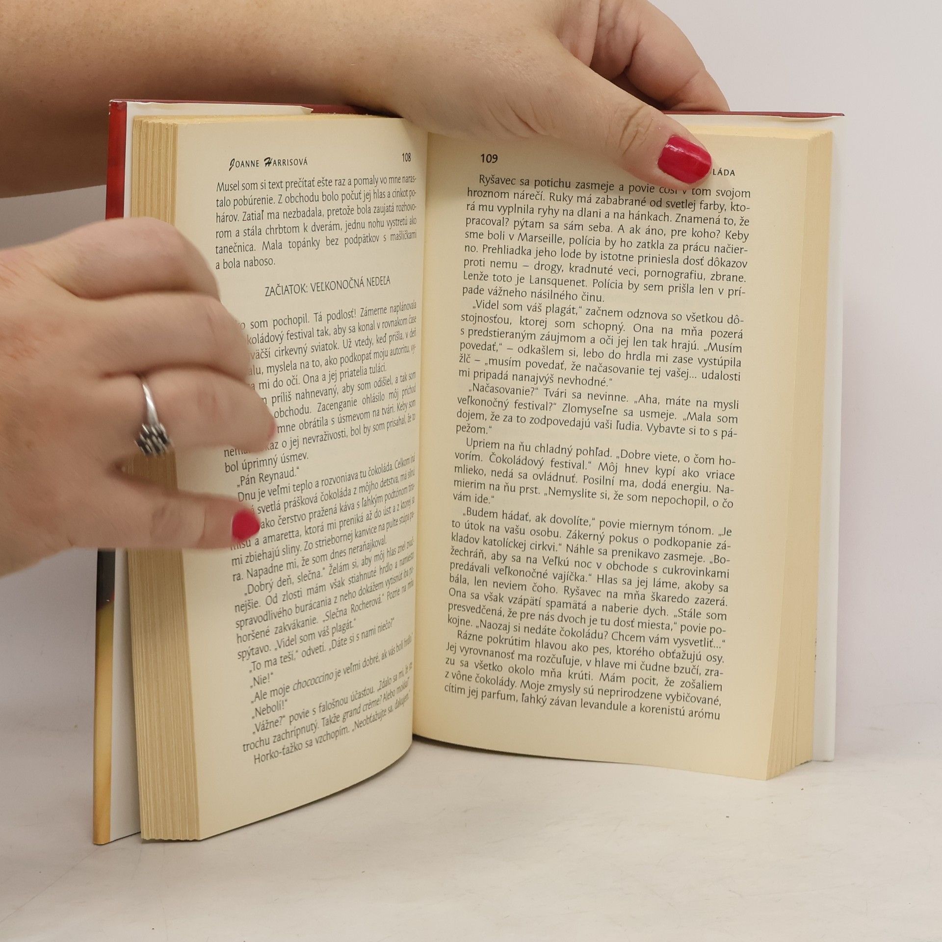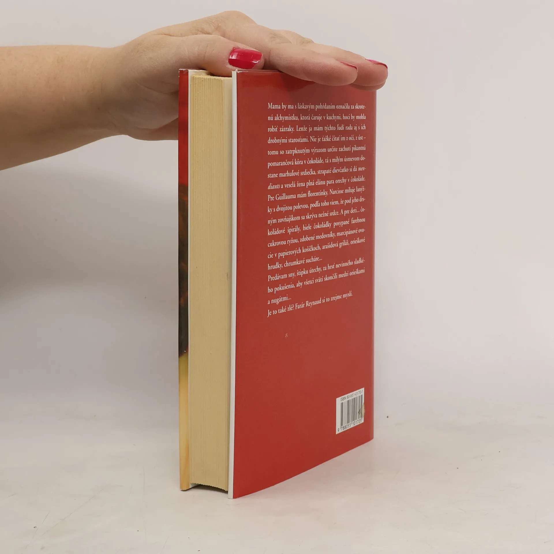 Do tichého francúzskeho mestečka sa prisťahuje záhadná cudzinka Vianne Rocherová s dcérkou a otvorí si priamo oproti kostolu obchodík s čokoládou. Viannin obchodík sa čoskoro stane miestom, kde si ľudia uľavujú na duši, šepkajú si tajomstvá, tkajú jemné sny. Úspešne sfilmovaný príbeh, v ktorom v kinosále doslova voňala čerstvo varená čokoláda.