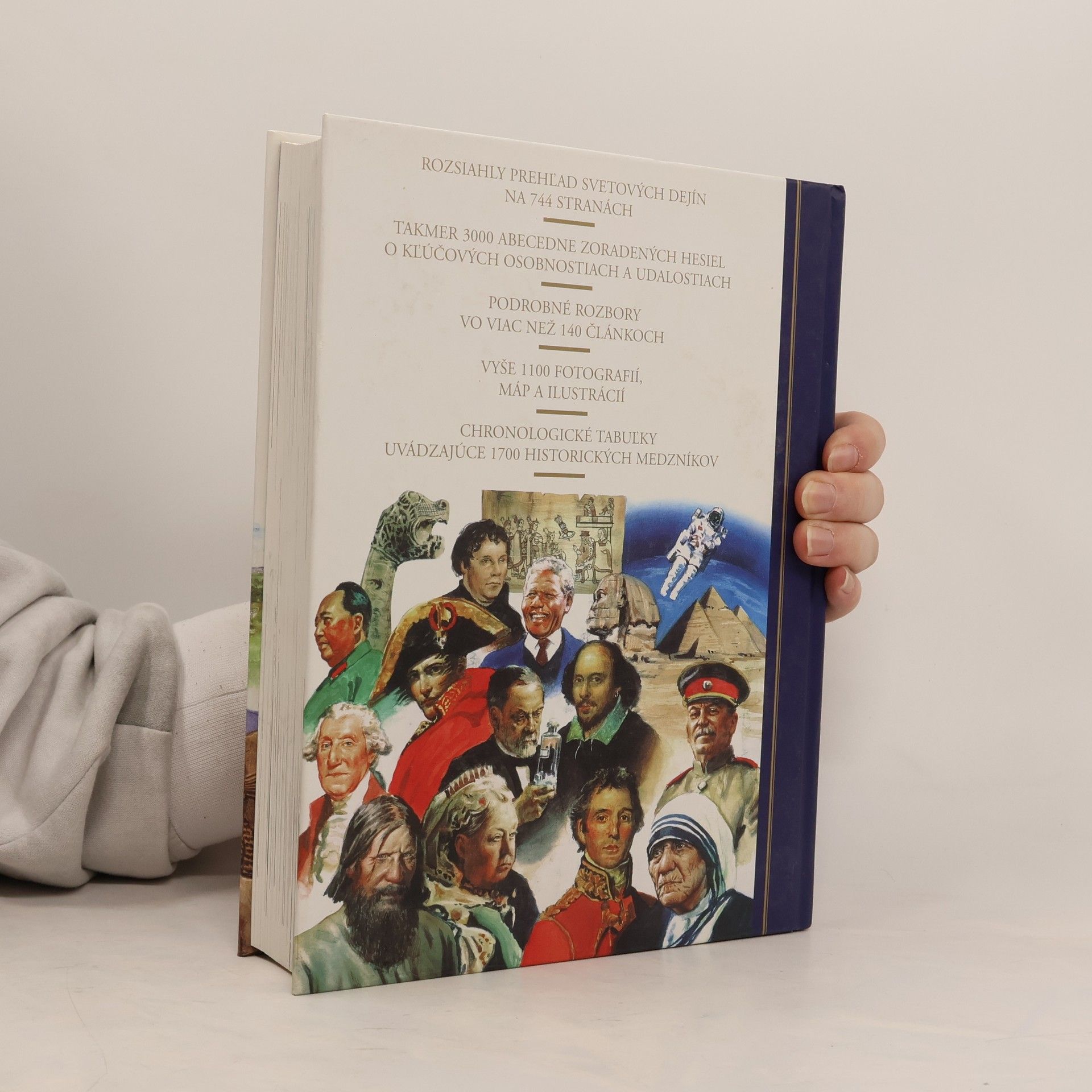 Od Magny Charty po Nelsona Mandelu, od pádu rímskeho impéria k hospodárskemu rastu Tichomorskej oblasti, od stavby Veľkého čínskeho múru po rúcanie Berlínskeho múru. Táto nová publikácia vás oboznámi so všetkými zásadnými informáciami o veľkých osobnostiach a kľúčových udalostiach svetových dejín. Okrem abecedne zoradených hesiel kniha ponúka viac než 140 článkov, ktoré sa detailnejšie zaoberajú historickými témami a postavami. Nájdete tu i chronologické tabuľky a prehľad kľúčových svetových vodcov, politikov a popredných dynastií.