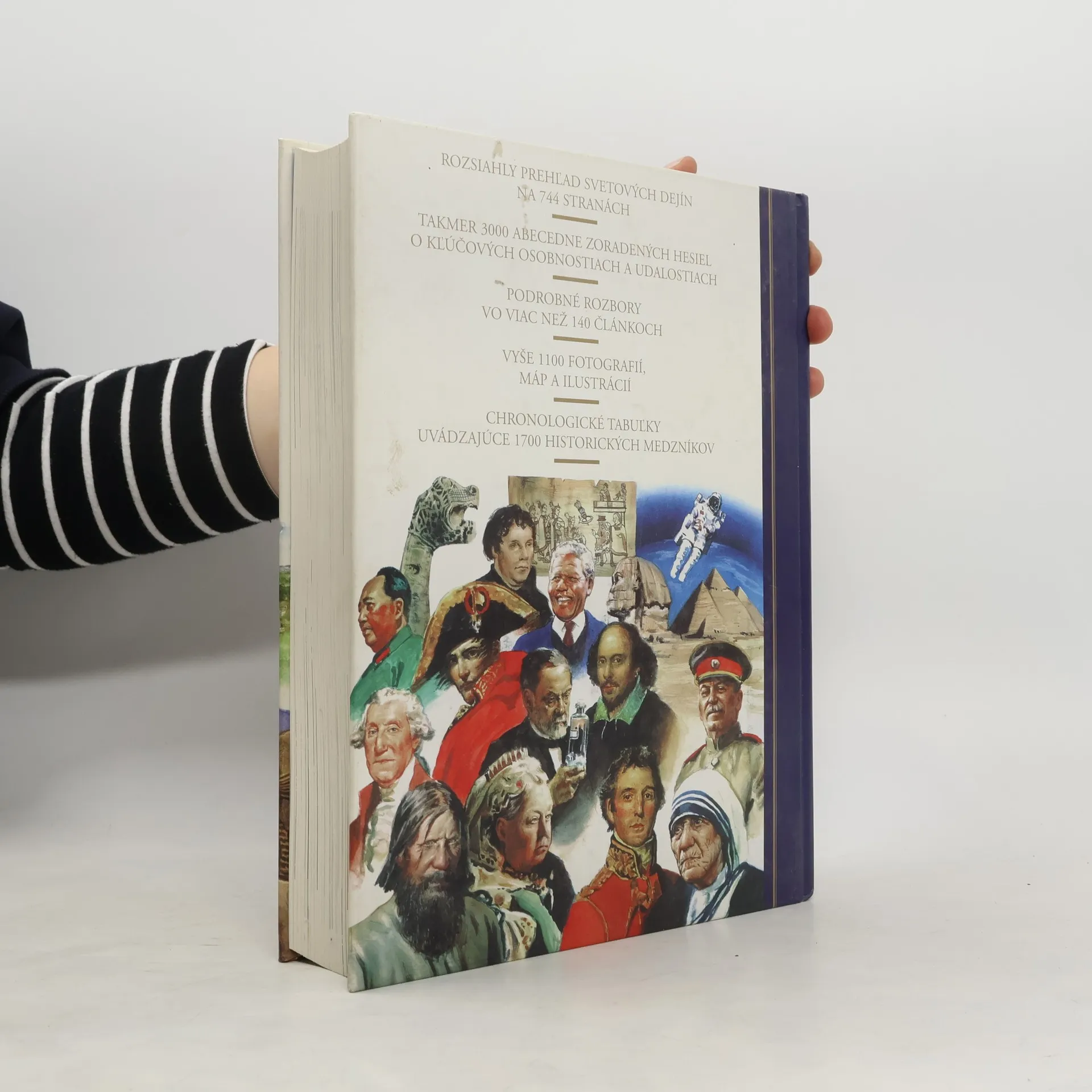Od Magny Charty po Nelsona Mandelu, od pádu rímskeho impéria k hospodárskemu rastu Tichomorskej oblasti, od stavby Veľkého čínskeho múru po rúcanie Berlínskeho múru. Táto nová publikácia vás oboznámi so všetkými zásadnými informáciami o veľkých osobnostiach a kľúčových udalostiach svetových dejín. Okrem abecedne zoradených hesiel kniha ponúka viac než 140 článkov, ktoré sa detailnejšie zaoberajú historickými témami a postavami. Nájdete tu i chronologické tabuľky a prehľad kľúčových svetových vodcov, politikov a popredných dynastií.