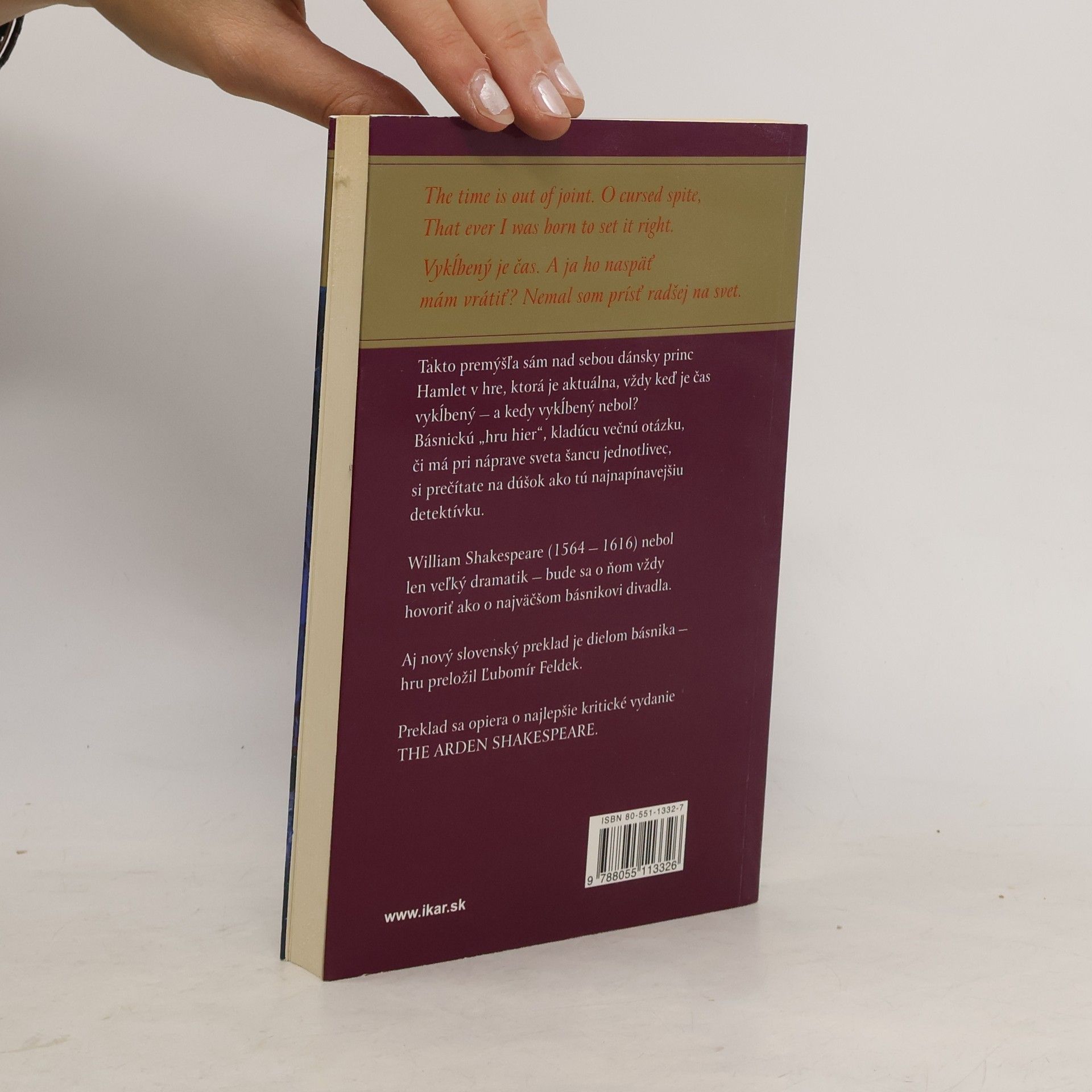 Čas vykĺbil sa. Mám ho vrátiť naspäť. Dočerta, na toto som prišiel na svet? Takto premýšľa sám nad sebou dánsky princ Hamlet v hre, ktorá je aktuálna vždy, keď je čas vykĺbený – a kedy vykĺbený nebol? Básnickú „hru hier", kladúcu večnú otázku, či má pri náprave sveta šancu jednotlivec, si prečítate na dúšok ako tú najnapínavejšiu detektívku.
