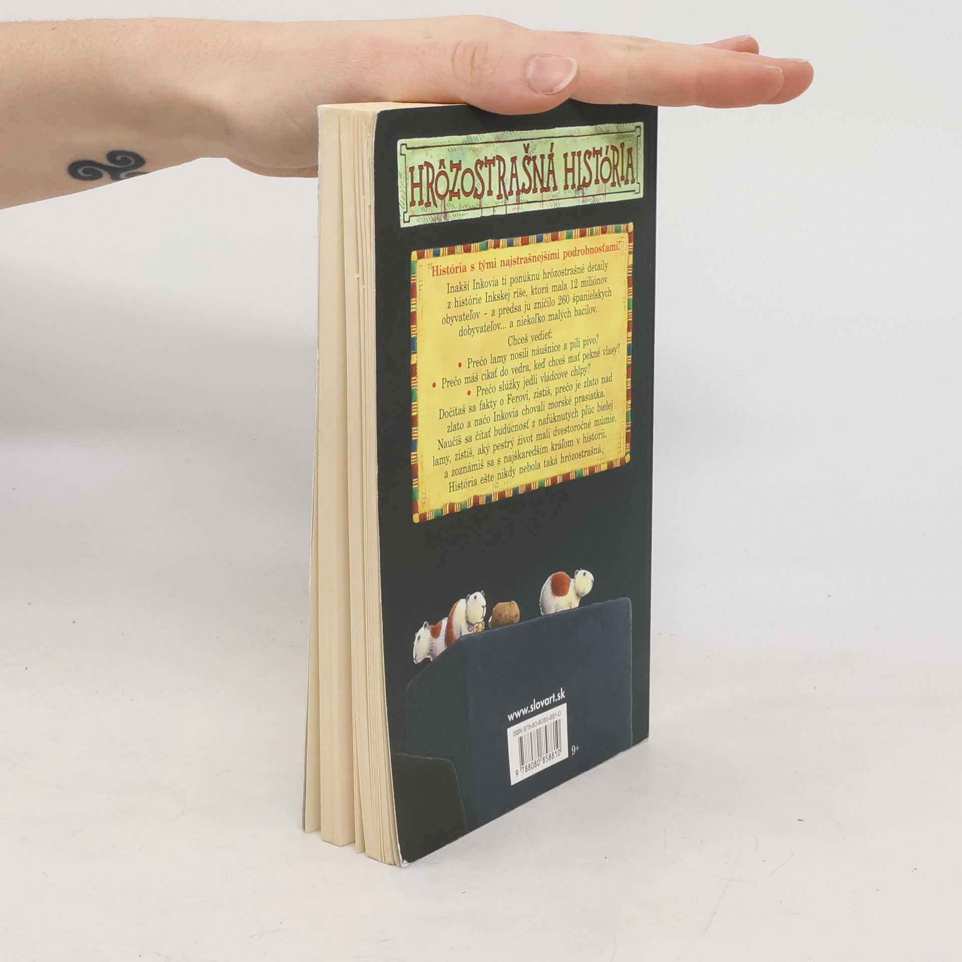 Dozviete sa množstvo drastických podrobností o ríši Inkov, v ktorej žilo 12 miliónov ľudí, a ktorú nakoniec zmietlo 260 Španielov a tiež niekoľko vírusov a bacilov. Zistíte, prečo lamy nosili náušnice a pili pivo, ako sa stať krajší pomocou vedra moču alebo prečo služobné jedli vládcové vlasy. Prečítate si o lesku zlatých chrámov a o obetných obradoch, pri ktorých Inkovia obetovali svoje deti. Môžete predpovedať budúcnosť z nafúknutých lamích pľúc alebo zistiť, čo poteší 200 rokov starú múmiu.