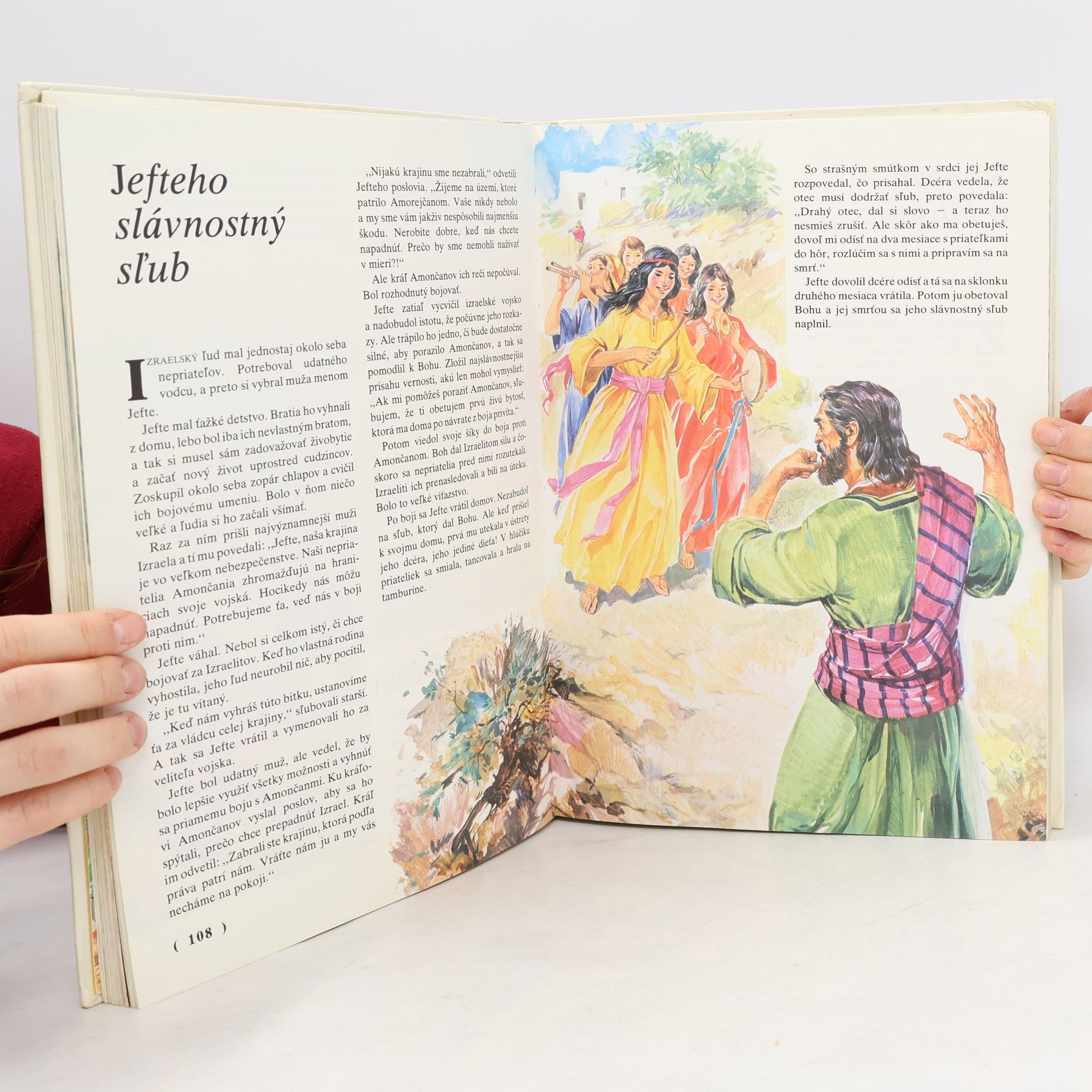 Bohato ilustrované príbehy Starého i Nového zákona, prerozprávané do zrozumiteľnej podoby pre dnešné deti. Kapitoly: Joatam a Abimelech, Jefteho slávnostný sľub, Samson a Filištínci, Rút a Noemi, Rút a Booz, Samuel vyprosený od pána, Samuel a Saul, Saula zvolia za kráľa, Jonatán poruší prísahu, Saul neuposlúchne Boha, Dávid, Izajov syn, Dávid a Goliáš, Saulova žiarlivosť, Dávid sa ožení so Saulovou dcérou, Dávid a Jonatán, Dávid a Abigail, Dávid kráľom, Dávid a Betsabe, Dávid a Absolón, Dávidova smrť, Šalamún kráľom, Šalamúnov súd, Stavba chrámu, Návšteva kráľovnej zo Sáby, Krkavce nakŕmia Eliáša, Kňazi boha Baala, Tichý, slabý hlas, Nabotova vinica, Odchod Eliáša a Elizea, Elizeus uzdraví Námana, Pomazanie Jehua, Joasova vláda, Elizeova smrž, Josiáš a Izaiášove proroctvá, Pád a zničenie Jeruzaléma, Židovskí zajatci v Babylone, Kráľov sen, Zlatá socha, Sidrach, Misach a Abdenego, Vyloženie a splnenie sna, Nápis na stene, Daniel v jame s levmi, Znovupostavenie chrámu, Znovupostavenie hradieb, Estera, Boh skúša Jóba, Jonáš a veľryba. Prvé vydanie. Cena knihy v čase vydania: 150.- Kčs.