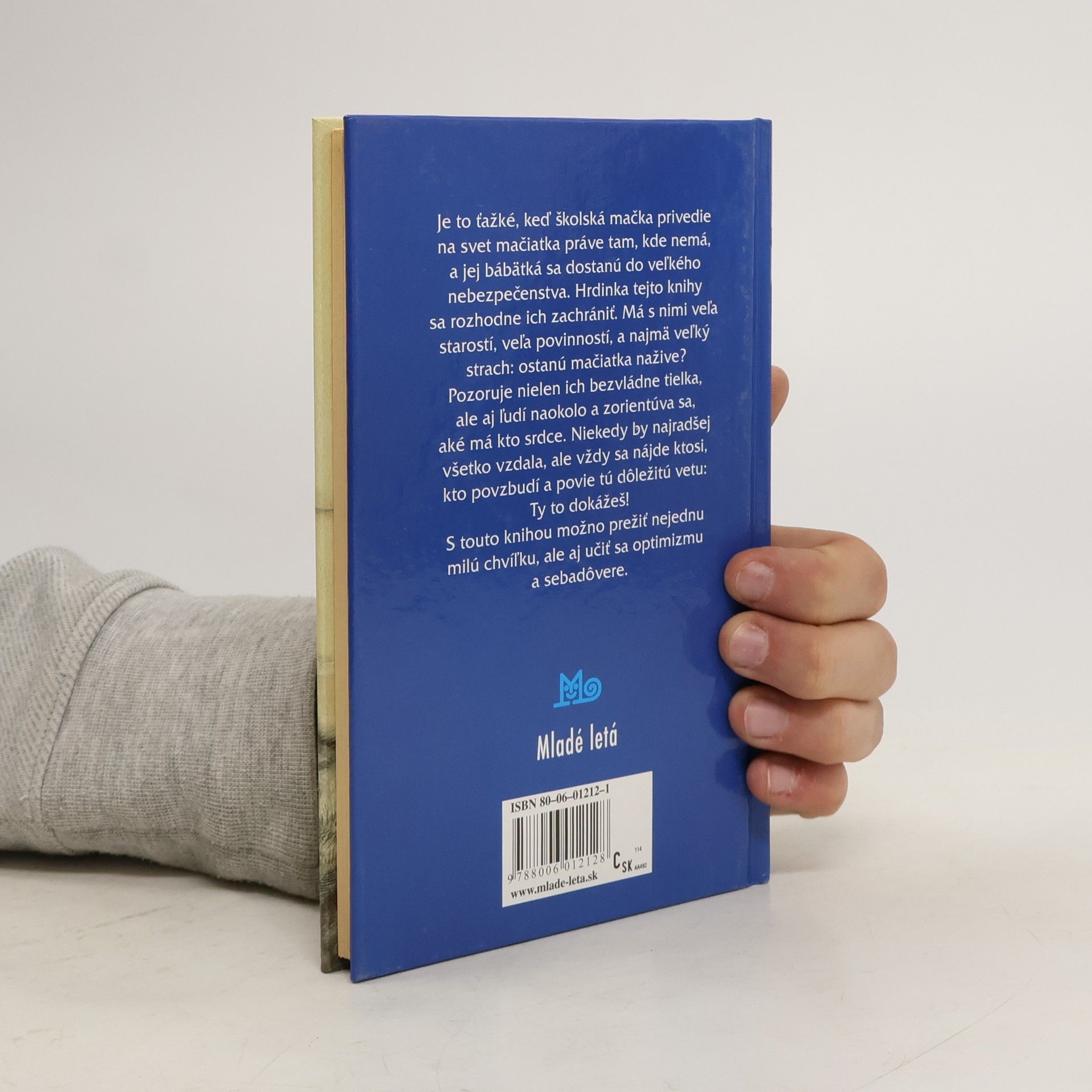 Je to ťažké, keď školská mačka privedie na svet mačiatka práve tam, kde nemá, a jej bábätká sa dostanú do veľkého nebezpečenstva. Hrdinka tejto knihy sa rozhodne ich zachrániť. Má s nimi veľa starostí, veľa povinností, a najmä veľký strach: ostanú mačiatka nažive ? Pozoruje nielen ich bezvládne tielka, ale aj ľudí naokolo a zorientúva sa, aké má kto srdce. Niekedy by najradšej všetko vzdala, ale vždy sa nájde ktosi, kto povzbudí a povie tú dôležitú vetu: Ty to dokážeš ! S touto knihou možno prežiť nejednu milú chvíľku, ale aj učiť sa optimizmu a sebadôvere. Prvé vydanie.