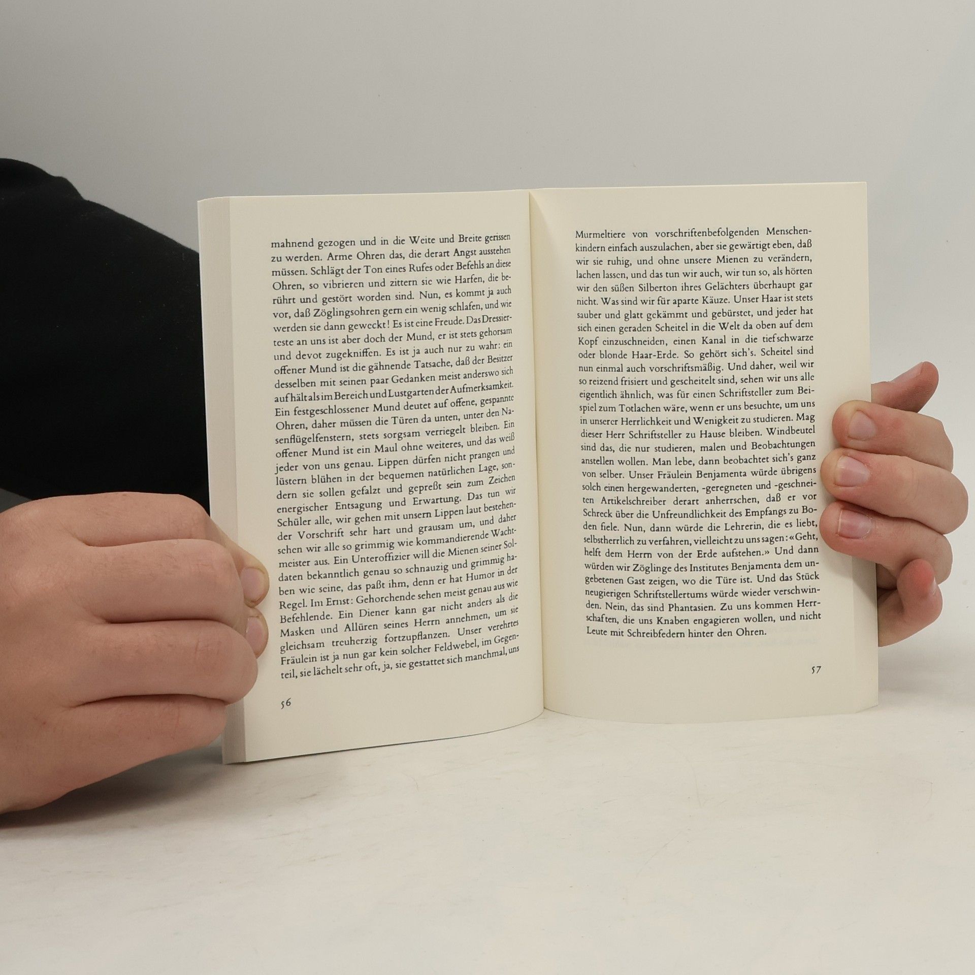 »Man lernt hier sehr wenig, es fehlt an Lehrkräften, und wir Knaben vom Institut Benjamenta werden es zu nichts bringen, d. h. wir werden alle etwas sehr Kleines und Untergeordnetes im späteren Leben sein.« Mit zarter Trauer und leiser Komik trägt Jakob von Gunten diesen Satz bei seinem Eintritt in ein obskures Berliner Erziehungsinstitut in sein Tagebuch ein. Eine eigentümliche Schule; für Diener, die sich auf ein Leben der Entsagung und Unterwerfung vorbereiten. Jakob von Gunten ist aber zugleich ein Abenteurer, ein Tänzer und Spieler, der in der Erniedrigung die Freiheit sucht. In diesem Tagebuch gehen Traum und Wirklichkeit ineinander über, melancholische Komik und Ironie kennzeichnen den Stil des Jugendlichen Tagebuchschreibers.