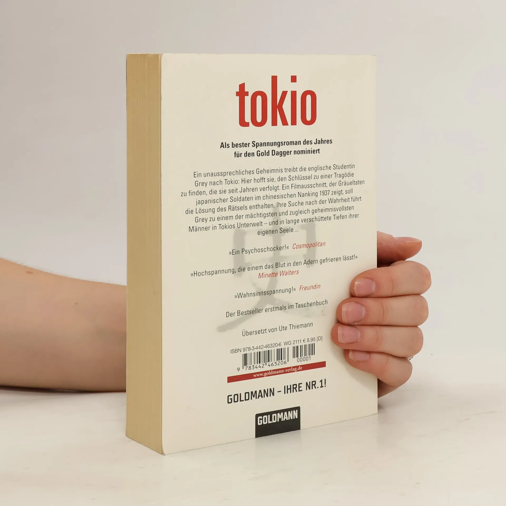 Ein unaussprechliches Geheimnis treibt die englische Studentin Grey nach Tokio: Hier hofft sie, den Schlüssel zu einer Tragödie zu finden, die sie seit Jahren verfolgt. Ein Filmausschnitt, der Gräueltaten japanischer Soldaten im chinesischen Nanking 1937 zeigt, soll die Lösung des Rätsels enthalten. Ihre Suche nach der Wahrheit führt Grey zu einem der mächtigsten und zugleich geheimnisvollsten Männer in Tokios Unterwelt – und in lange verschüttete Tiefen ihrer eigenen Seele … • Als bester Spannungsroman des Jahres für den Gold Dagger nominiert.
