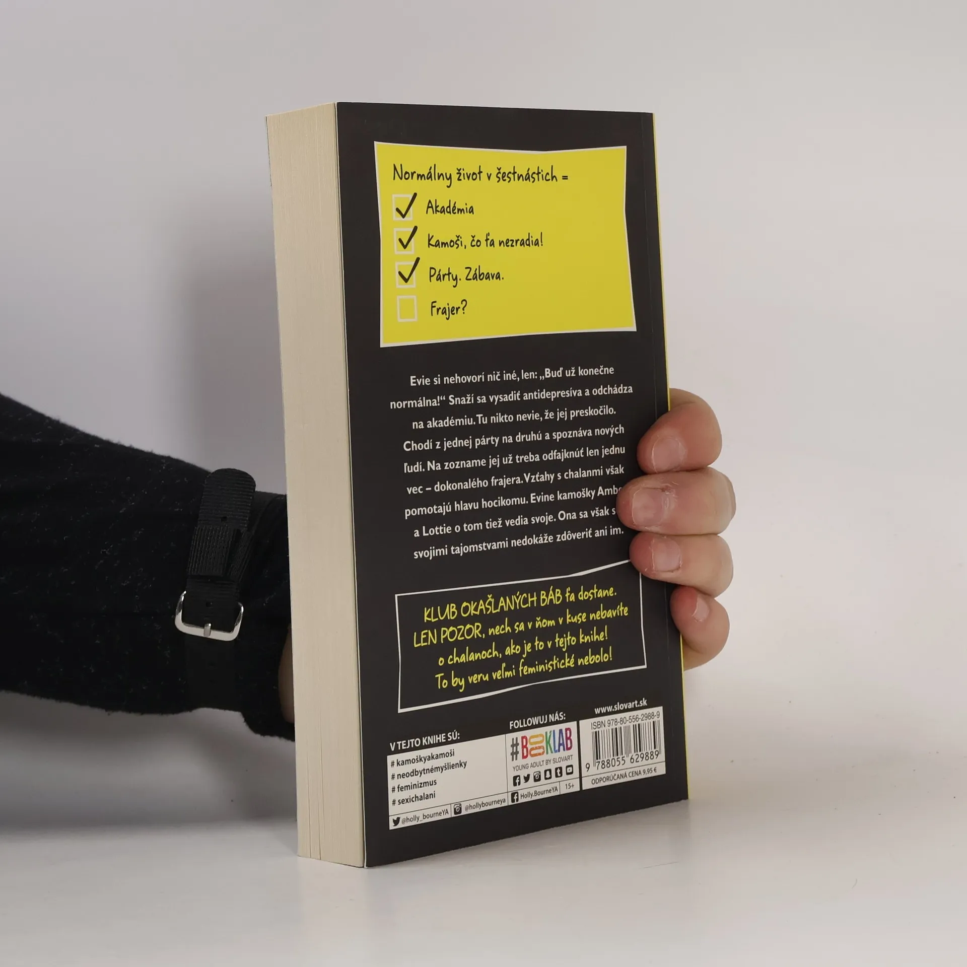 Známa autorka romantických románov Holly Bourne prichádza so sériou o dievčatách z klubu, v ktorom nik nie je dobrovoľne, z Klubu okašlaných báb. V prvej časti si jedna z nich – Evie – nehovorí nič iné, len: „Buď už konečne normálna!“ Snaží sa vysadiť antidepresíva a odchádza na strednú. Tu nikto nevie, že jej preskočilo. Chodí z jednej párty na druhú a spoznáva nových ľudí. Na zozname jej už treba odfajknúť len jednu vec – dokonalého frajera. Vzťahy s chalanmi však pomotajú hlavu hocikomu. Eviene nové kamošky Amber a Lottie o tom tiež vedia svoje. Ona sa však so svojimi tajomstvami nedokáže zdôveriť ani priateľkám. Ako sa s nimi chce potom zveriť tomu pravému, ak sa konečne zjaví? Ako jej vôbec môže niekto pomôcť, ak nikto netuší, čo má za sebou?