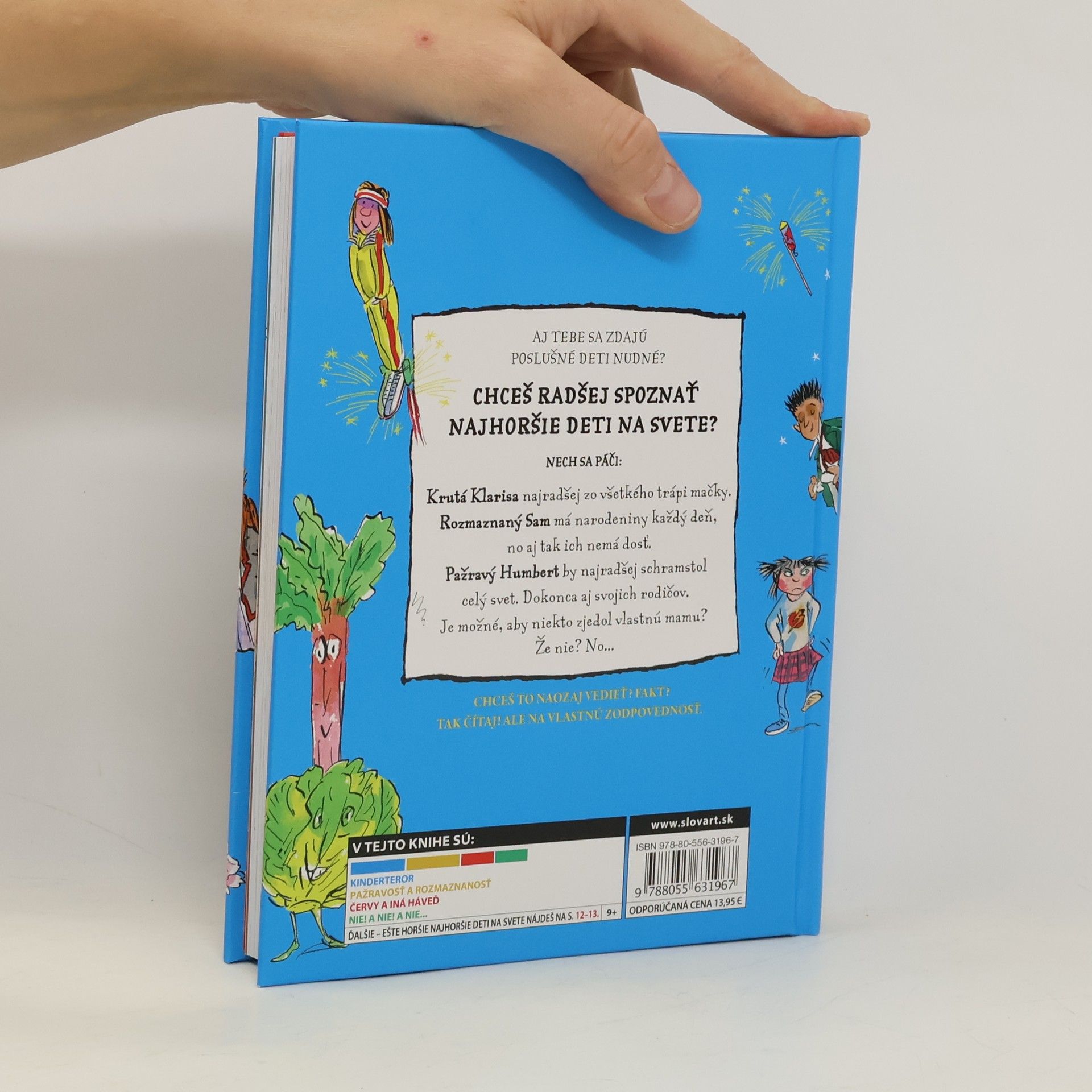 Nenašli ste sa v prvej knižke o najhorších deťoch na svete od svetoznámeho britského komika a autora detských kníh Davida Walliamsa? Skúste otvoriť túto plnú farebných obrázkov! Možno sa podobáte na niektorého z galganov či galganiek, o ktorých sa v nej píše. Šancu má päť chalanov a päť dievčat. Keď ste pažraví, zlomyseľní, rozmaznaní, odmietaví či príliš súťaživí, prečítajte si, čo vám hrozí. Humbert, Klarisa, Nela alebo Sam sú dôkazmi toho, že sa občas predsa len oplatí poslúchať. Možno však budete mať iný názor. Tak čítajte a uvidíte...