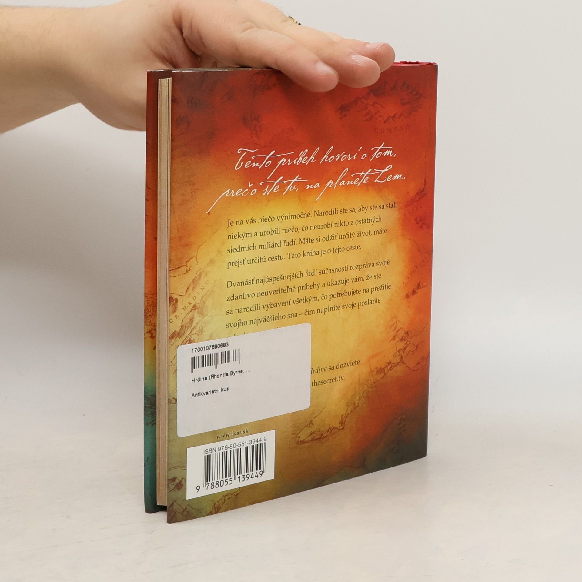 HRDINA, najnovší a doteraz najvýznamnejší projekt Rhondy Byrneovej, tvorkyne svetovo najpredávanejšieho filmu a knihy The Secret, Tajomstvo, ktorý vám zmení svet. OD NULY K HRDINOVI... MAPA VEDÚCA K BOHATÉMU ŽIVOTU Aké je vaše pravé poslanie a prečo ho ešte nerealizujete? Predstavte si, že existuje mapa, ktorá vám krok za krokom ukáže, ako sa dostať z miesta, kde sa teraz nachádzate, k svojmu pravému poslaniu a k životu, ktorý máte prežiť – tomu najúžasnejšiemu, najbohatšiemu, najuspokojujúcejšiemu a najoslňujúcejšiemu životu, o akom ste kedy snívali. HRDINA je tá mapa pre váš život. Sledovaním cesty dvanástich ľudí, v súčasnosti najúspešnejších na planéte, sa naučíte, ako využiť svoje vnútorné sily na prekonanie prekážok a na splnenie aj tých najneuveriteľnejších snov. Budú vás inšpirovať, ako nájsť svoje vlastné poslanie a aké kroky podniknúť, aby sa váš vysnívaný život stal každodennou realitou. Buďte hrdinom, ktorým máte byť.