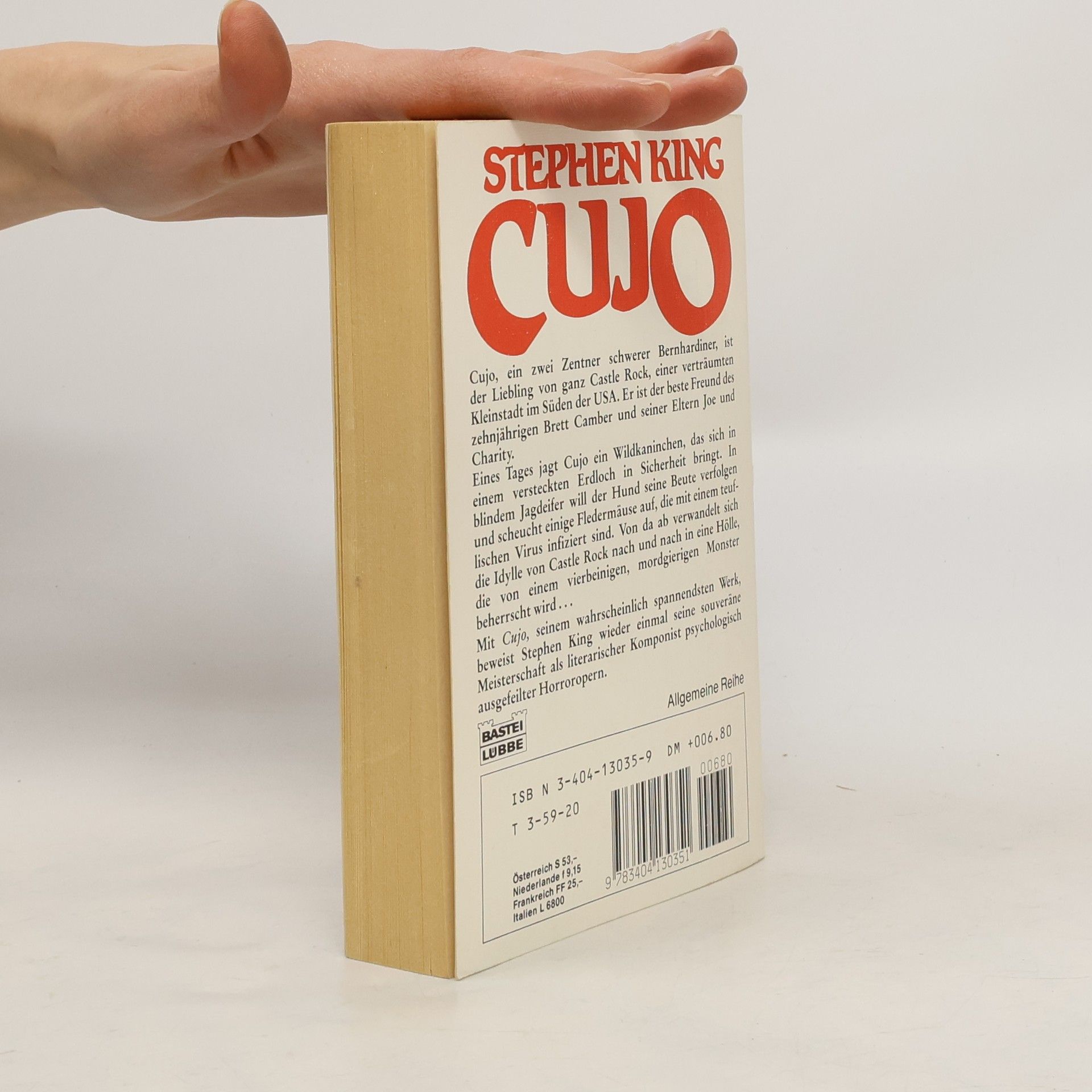 Cujo, ein zwei Zentner schwerer Bernhardiner, ist der Liebling von ganz Castle Rock, einer verträumten Kleinstadt im amerikanischen Bundesstaat Maine. Eines Tages jagt Cujo ein Wildkaninchen, das sich in einem versteckten Erdloch in Sicherheit bringt. In blindem Jagdeifer will der Hund seine Beute verfolgen und scheucht dabei ein namenloses Übel auf, das die Idylle von Castle Rock nach und nach in eine Hölle verwandelt, die von einem vierbeinigen, mordgierigen Ungeheuer beherrscht wird.