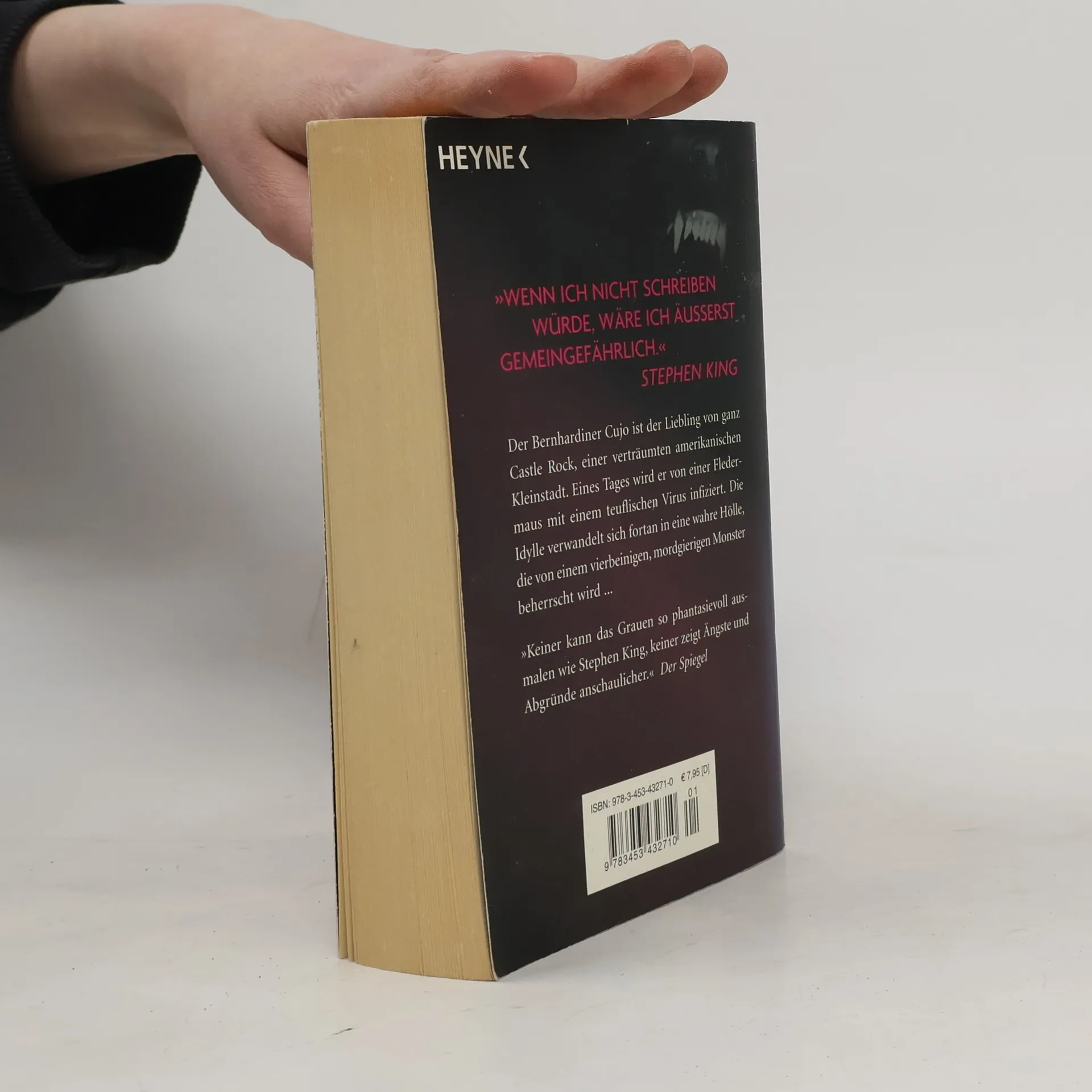 Zweiter Roman des Castle-Rock-Zyklus Der Bernhardiner Cujo ist der Liebling von ganz Castle Rock. Eines Tages wird er von einer Fledermaus mit einem teuflischen Virus infiziert. Die Kleinstadtidylle verwandelt sich fortan in eine Hölle, die von einem mordgierigen Monster beherrscht wird ...
