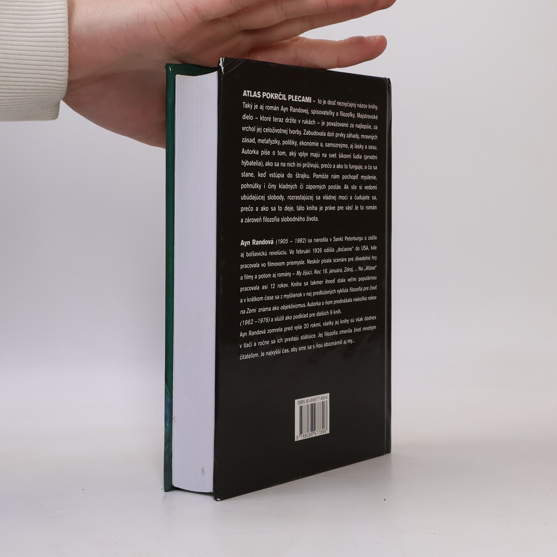 Atlas pokrčil pokrčil – to je dosť nezvyčajný názov knihy. Taký je aj Ayn Randovej, spisovateľky a filozofky. Toto dielo je považované za najlepšie, za vrchol jej celoživotnej tvorby. Zabudovala doň prvky záhady, mravných zásad, metafyziky, politiky, ekonómie, a samozrejme, aj lásky a sexu. Autorka píše o tom, aký vplyv majú na svet šikovní ľudia (prvotní hýbatelia), ako sa na nich iní priživujú, prečo a ako to funguje, a čo sa stane, keď vstúpia do štrajku. Pomôže nám pochopiť myslenie, pohnútky i činy kladných či záporných postáv. Ak ste si vedomí ubúdajúcej slobody, rozrastajúcej sa vládnej moci a čudujete sa, prečo a ako sa to deje, táto kniha je práve pre vás! Je to román a zároveň filozofia slobodného života.
