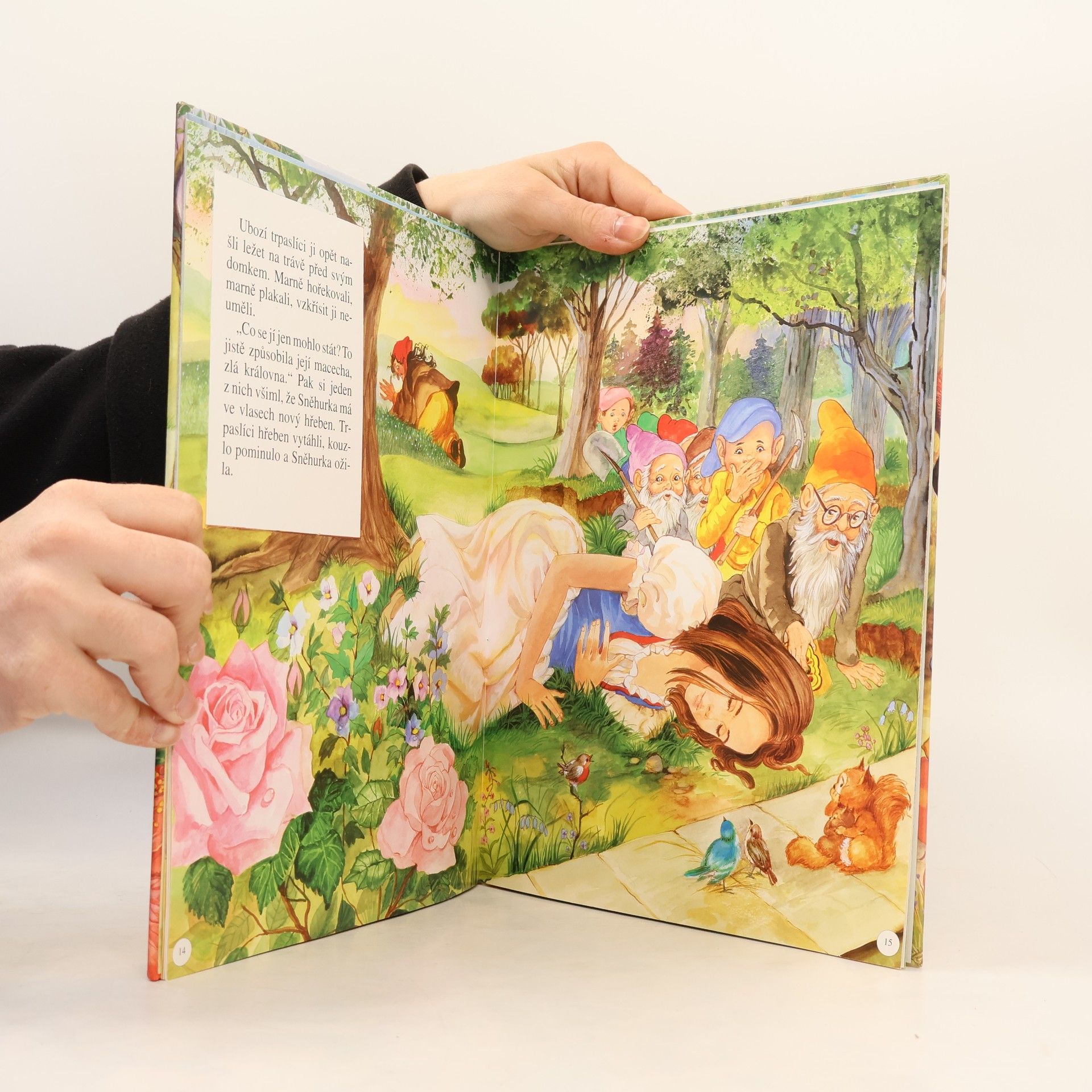 Začtěte se do známého příběhu o Sněhurce, která se díky úkladům žárlivé macechy ocitla v hlubokém lese kde se jí ujali dobrotiví trpaslíci. Slavnou pohádku bratří Grimmů převyprávěla a osobitým způsobem ilustrovala Francesca Cosanti.