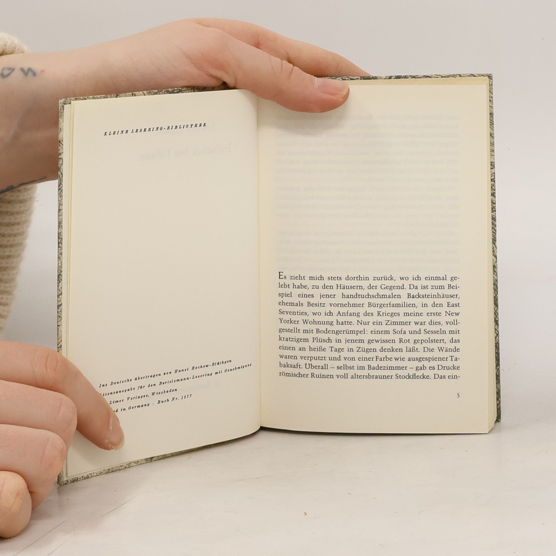 „Bei all ihrer schicken Magerkeit strahlte sie eine Haferflocken-Gesundheit aus, eine Seifen- und Zitronen-Reinlichkeit, und auf ihren Wangen lag eine raue Röte. Sie hatte einen großen Mund und eine Stupsnase. Eine Sonnenbrille verbarg ihre Augen. Es war ein Gesicht, das nicht mehr ganz in der Kindheit zuhause war und schon einer Frau gehörte.“ So beschreibt Truman Capote seine unsterbliche Heldin Holly Golightly. Die fast Neunzehnjährige, die voller Lebenshunger vom Land in die große Stadt ausgerissen ist, hat nichts außer ihrer Erscheinung und Ausstrahlung, die sie befähigt, mit Männern zu spielen und sich gewissermaßen aushalten zu lassen. Manchmal, im Partytrubel von New York, glänzt sie unschuldig, doch dann überkommt sie das „rote Elend“, das Gefühl von innerer Leere und Einsamkeit. In solchen Momenten flieht sie zur Fifth Avenue zu Tiffany, wo der Schimmer der Diamanten ihr Sicherheit gibt. Ihr Nachbar, ein junger Schriftsteller, beobachtet ihr aufregendes Leben und liebt ihre Schlagfertigkeit sowie ihre originelle Sprache. Gelegentlich spielt sie Lieder, die an Südstaaten-Nadelwälder oder die Prärie erinnern. Eines Tages ist sie plötzlich verschwunden, und zurück bleibt nur ihr namenloser Kater, auf dessen Suche sich der Erzähler begibt.