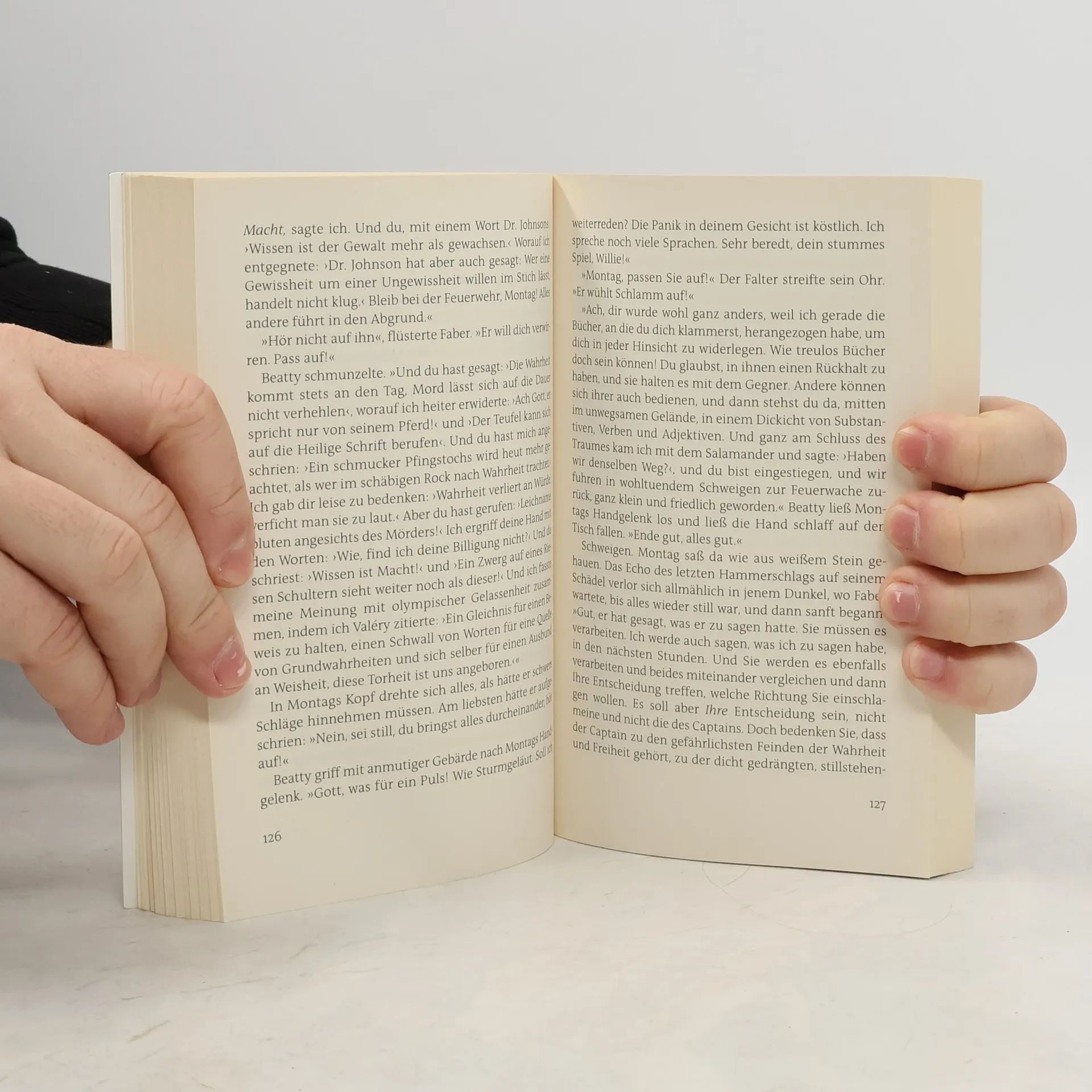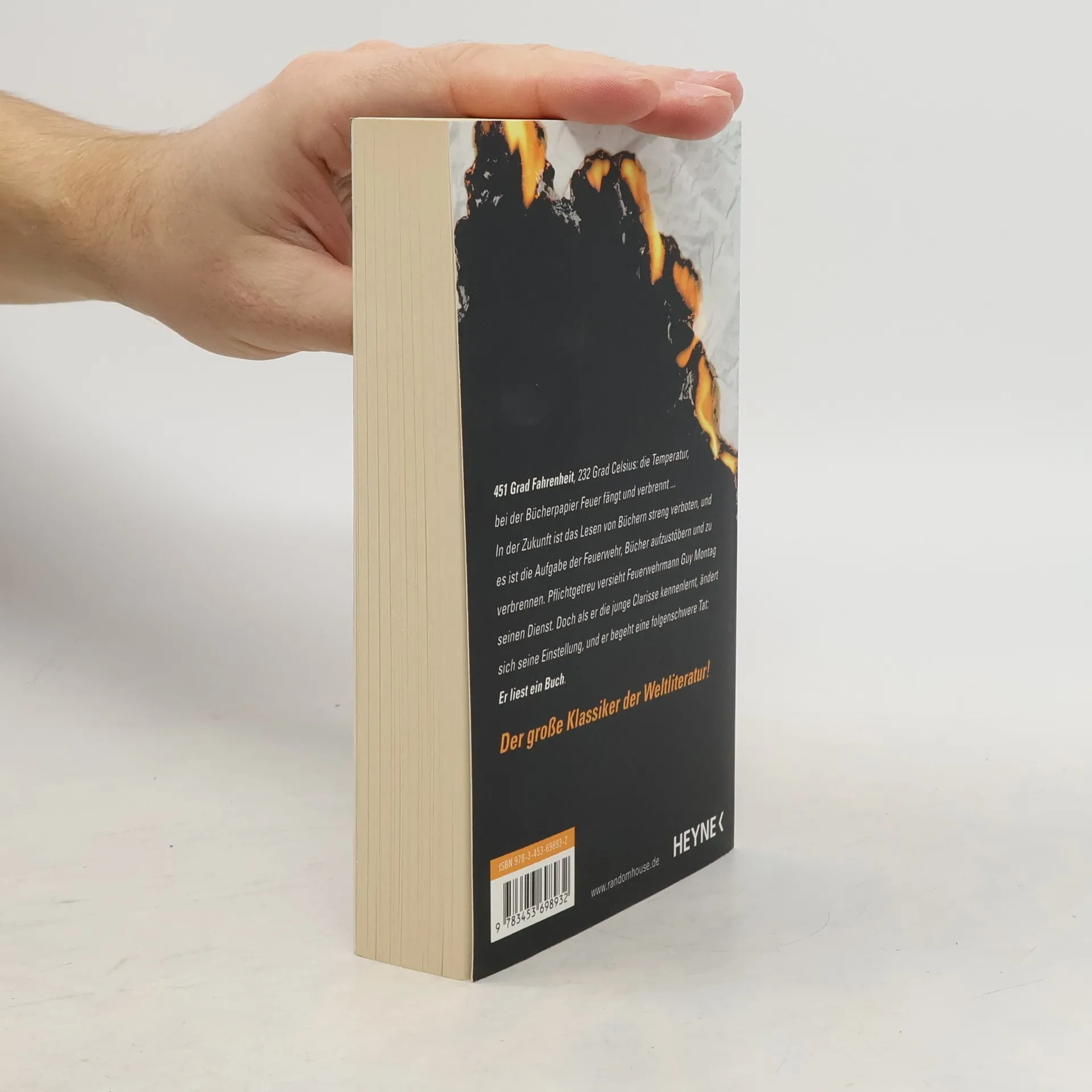 451 Fahrenheit oder 232 Celcius - die Temperatur, bei der Papier verbrennt. Guy Montag ist Feuerwehrmann. Es ist seine Aufgabe, Bücher zu beschlagnahmen und zu verbrennen. Denn Bücher sind die Quelle allen Unglücks. Ray Bradburys Klassiker in vollständig überarbeiteter Neuausgabe. Mit einem Vorwort von Brian W. Aldiss. Source: randomhouse.de