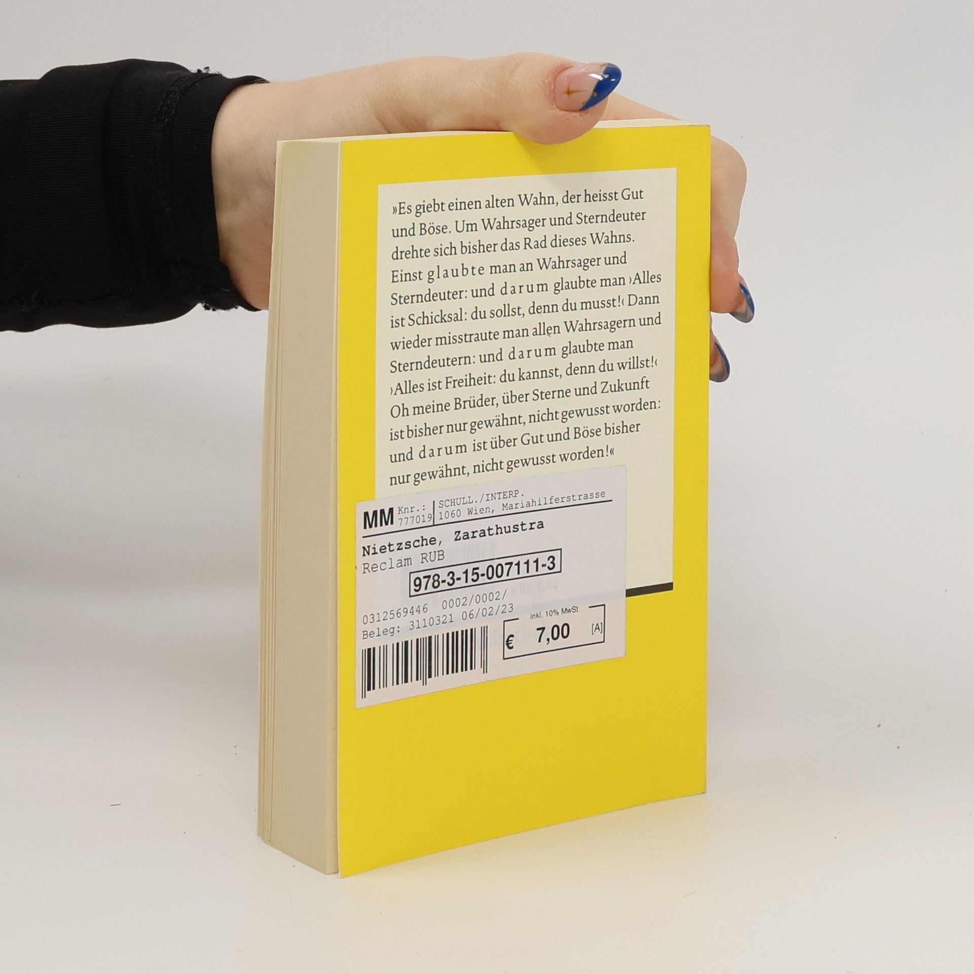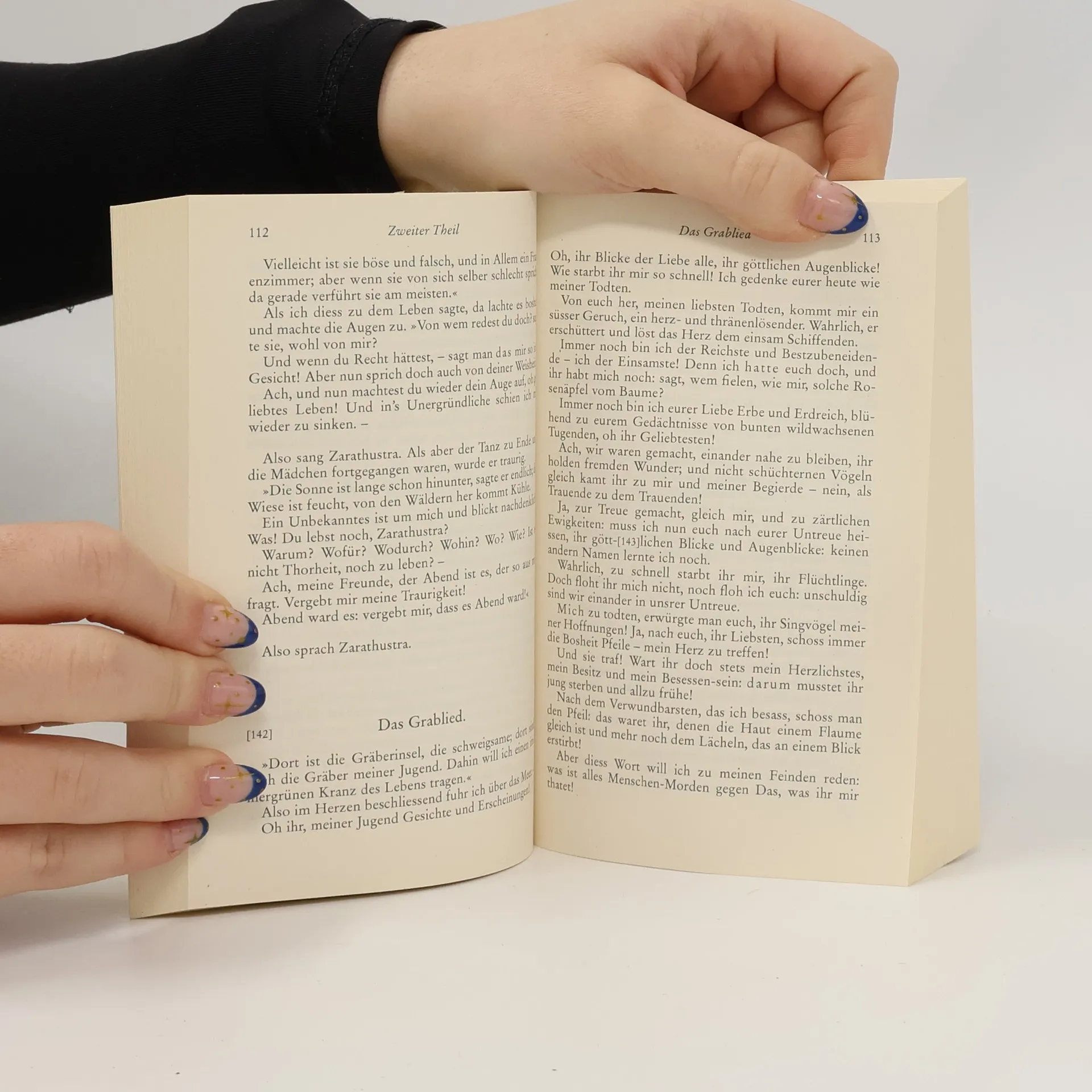 Inhaltsverzeichnis Zarathustra’s Vorrede (1. Teil) Die Reden Zarathustras (2. Teil): Von den drei Verwandlungen - Von den Lehrstühlen der Tugend - Von den Hinterweltlern - Von den Verächtern des Leibes - Von den Freuden- und Leidenschaften - Vom bleichen Verbrecher - Vom Lesen und Schreiben - Vom Baum am Berge - Von den Predigten des Todes - Vom Krieg und Kriegsvolke - Vom neuen Götzen - Von den Fliegen des Marktes - Von der Keuschheit - Vom Freunde - Von tausend und Einem Ziele - Von der Nächstenliebe - Vom Wege des Schaffenden - Von alten und jungen Weiblein - Vom Biss der Natter - Von Kind und Ehe - Vom freien Tode - Von der schenkenden Tugend - Das Kind mit dem Spiegel - Auf den glückseligen Inseln - Von den Mitleidigen - Von den Priestern - Von den Tugendhaften - Vom Gesindel - Von den Taranteln - Von den berühmten Weisen - Das Nachtlied - Das Tanzlied - Das Grablied - Von der Selbst-Ueberwindung - Von den Erhabenen - Vom Lande der Bildung - Von der unbefleckten Erkenntnis - Von den Gelehrten - Von den Dichtern - Von grossen Ereignissen - Der Wahrsager - Von der Erlösung - Von der Menschen-Klugheit - Die stillste Stunde 3. Teil: Der Wanderer - Vom Gesicht und Räthsel - Von der Seligkeit wider Willen - Vor Sonnen-Aufgang - Von der verkleinernden Tugend - Auf dem Oelgebirge - Vom Vorübergehen - Von den Abtrünnigen - Die Heimkehr - Von den drei Bösen - Vom Geist der Schwere - Von alten und neuen Tafeln - Der Genesende - V