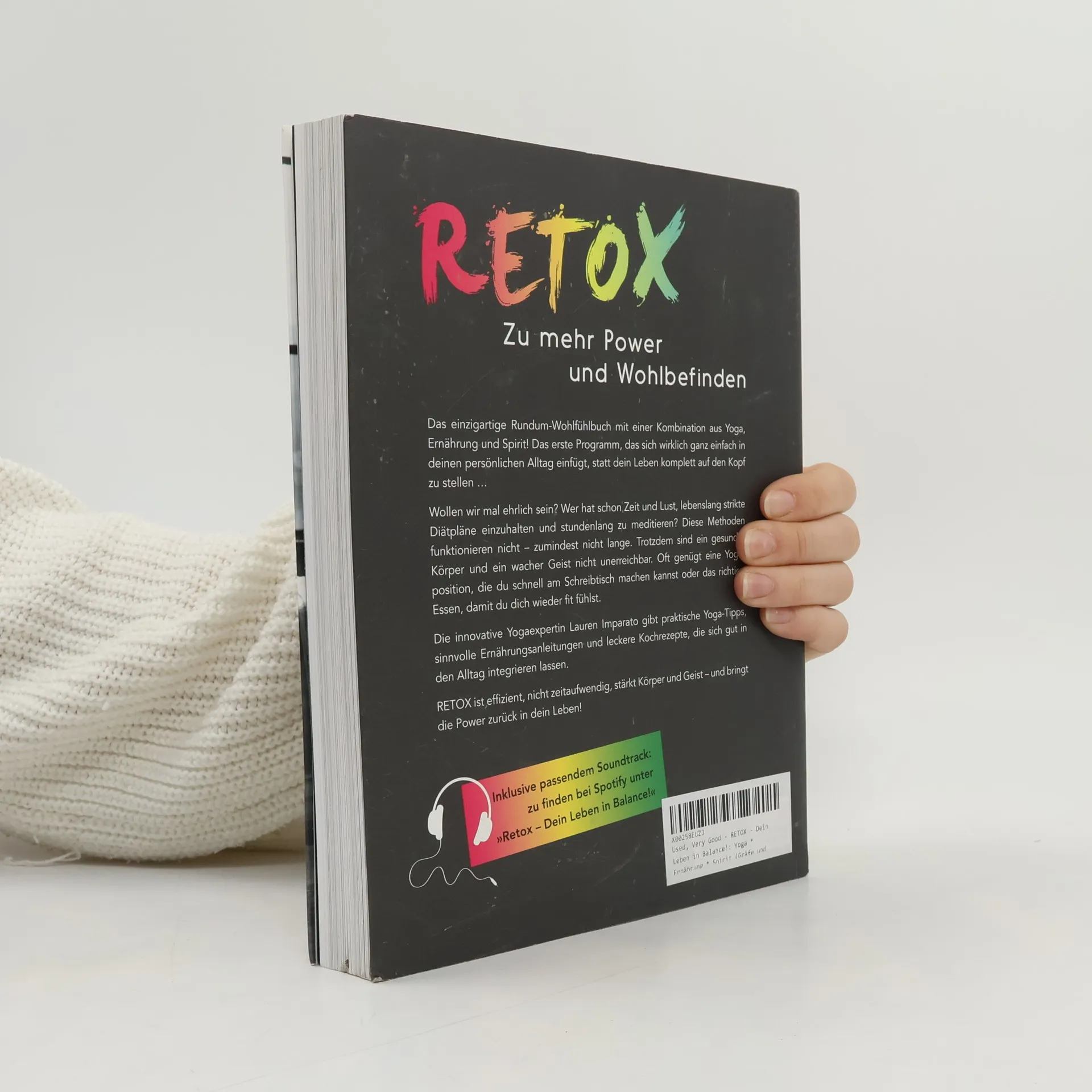 Detox war gestern, RETOX ist heute! Endlich ist es da: Das allumfassende Yoga- und Ernährungsbuch, das sich mit seinen praktischen Tipps und Anleitungen wunderbar in unseren Alltag einfügt. Denn wer hat schon die Zeit, lebenslang strikte Diätpläne einzuhal-ten und stundenlang zu meditieren? Wollen wir mal ehrlich sein? Diese Methoden funktio-nieren nicht - zumindest nicht lange. Trotzdem sind ein gesunder Körper und ein wacher Geist nicht unerreichbar. Oft genügt eine Yogaposition, die man schnell am Schreibtisch machen kann oder das richtige Essen, um sich wieder fit zu fühlen. In RETOX muss man nicht jeglichem Genuss entsagen oder seine Welt auf den Kopf stellen. Nein, es geht um die optimale, wissenschaftlich fundierte Gesundheitslösung für den Einzelnen. Dazu gibt die Expertin Imparato praktische Yoga-Tipps, Ernährungsanleitungen und Kochrezepte, die gut in den Alltag integrierbar sind. RETOX ist wenig zeitaufwendig, effizient - und bringt die Energien zurück ins Leben!