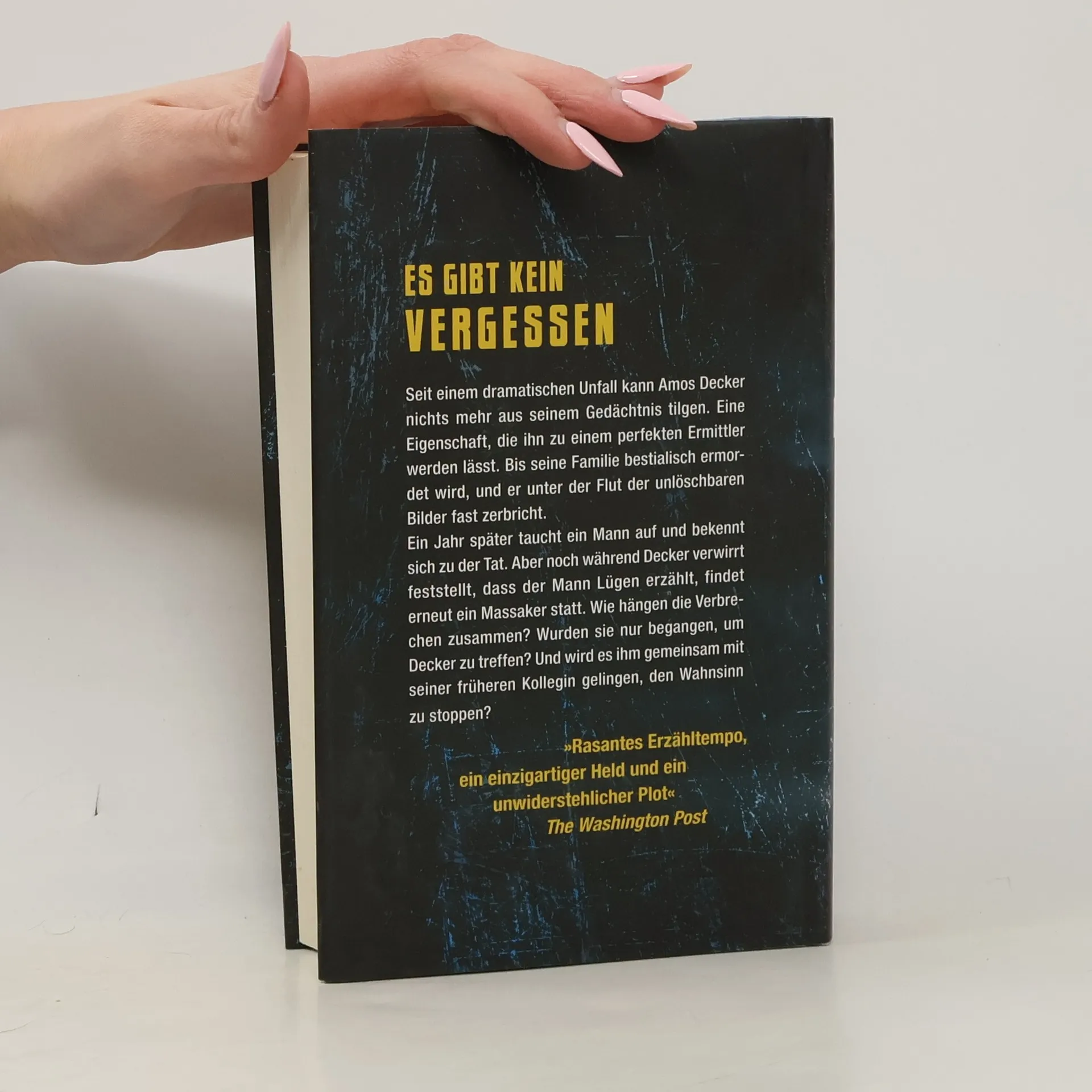 Seit einem dramatischen Unfall kann Amos Decker nichts mehr aus seinem Gedächtnis tilgen. Eine Eigenschaft, die ihn zu einem perfekten Ermittler werden lässt. Bis seine Familie bestialisch ermordet wird und er unter der Flut der unlöschbaren Bilder fast zerbricht. Ein Jahr später taucht ein Mann auf und bekennt sich zu der Tat. Und noch während Decker verwirrt feststellt, dass der Mann lügt, findet erneut ein Massaker statt, diesmal an Deckers alter Schule. Wie hängen die Verbrechen zusammen? Wurden sie nur begangen, um Decker zu treffen? Und wird es ihm gemeinsam mit seiner früheren Kollegin gelingen, den Wahnsinn zu stoppen?