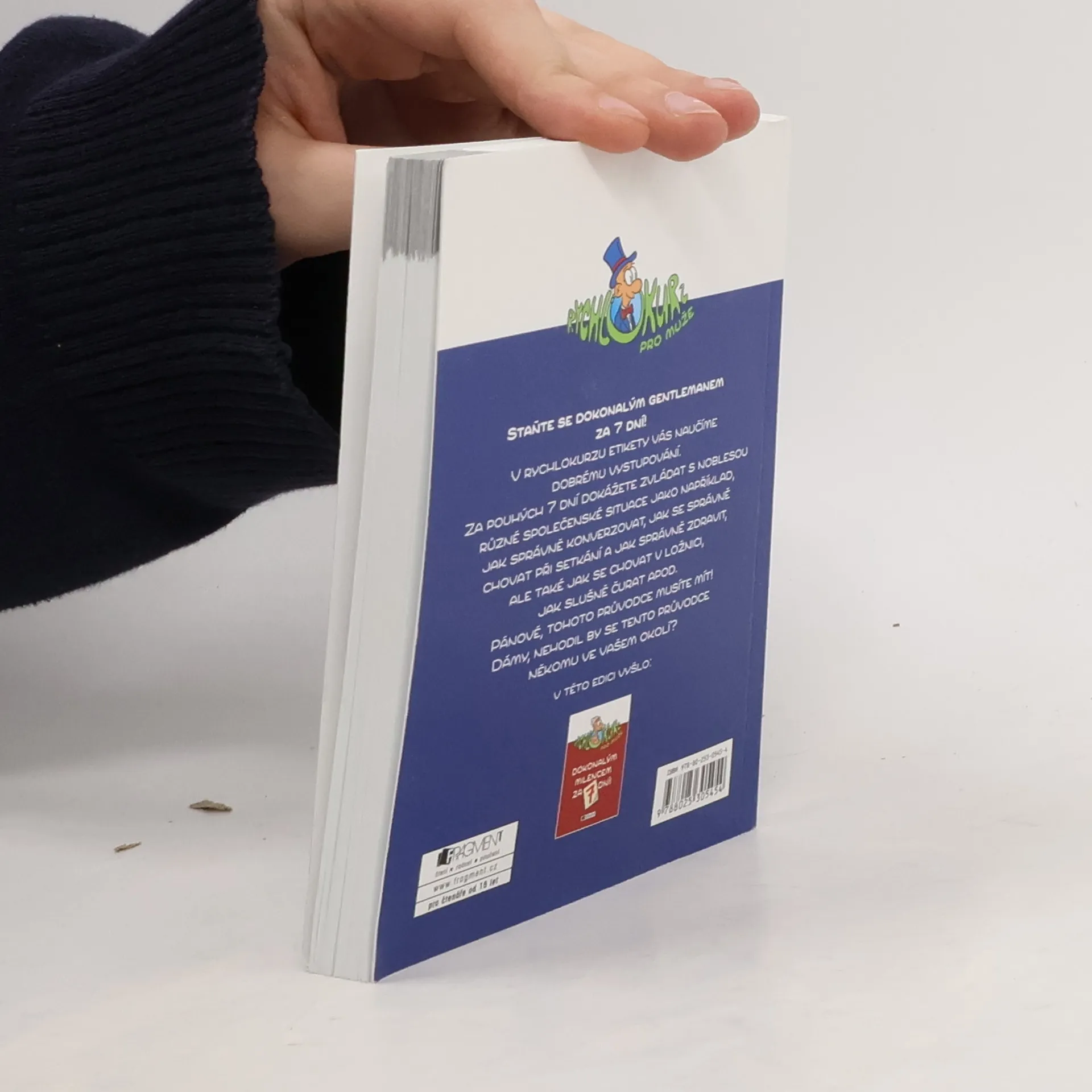 Staňte se dokonalým gentlemanem za 7 dní! V rychlokurzu etikety vás naučíme dobrému vystupování. Za pouhých 7 dní dokážete zvládat s noblesou různé společenské situace jako například jak slušně čůrat, co dělat, když se uprdnete ve výtahu, jak správně konverzovat, jak se chovat v ložnici apod. Pánové, tohoto průvodce musíte mít! Dámy, nehodil by se tento průvodce někomu ve vašem okolí?
