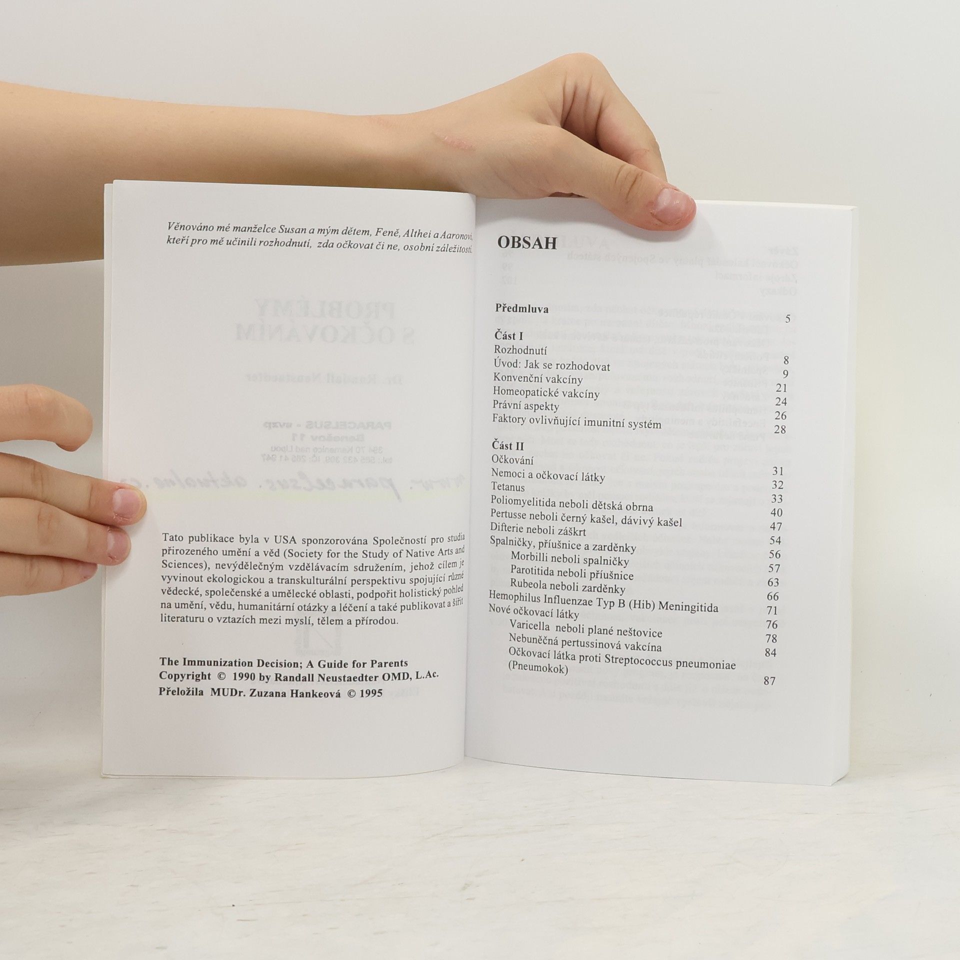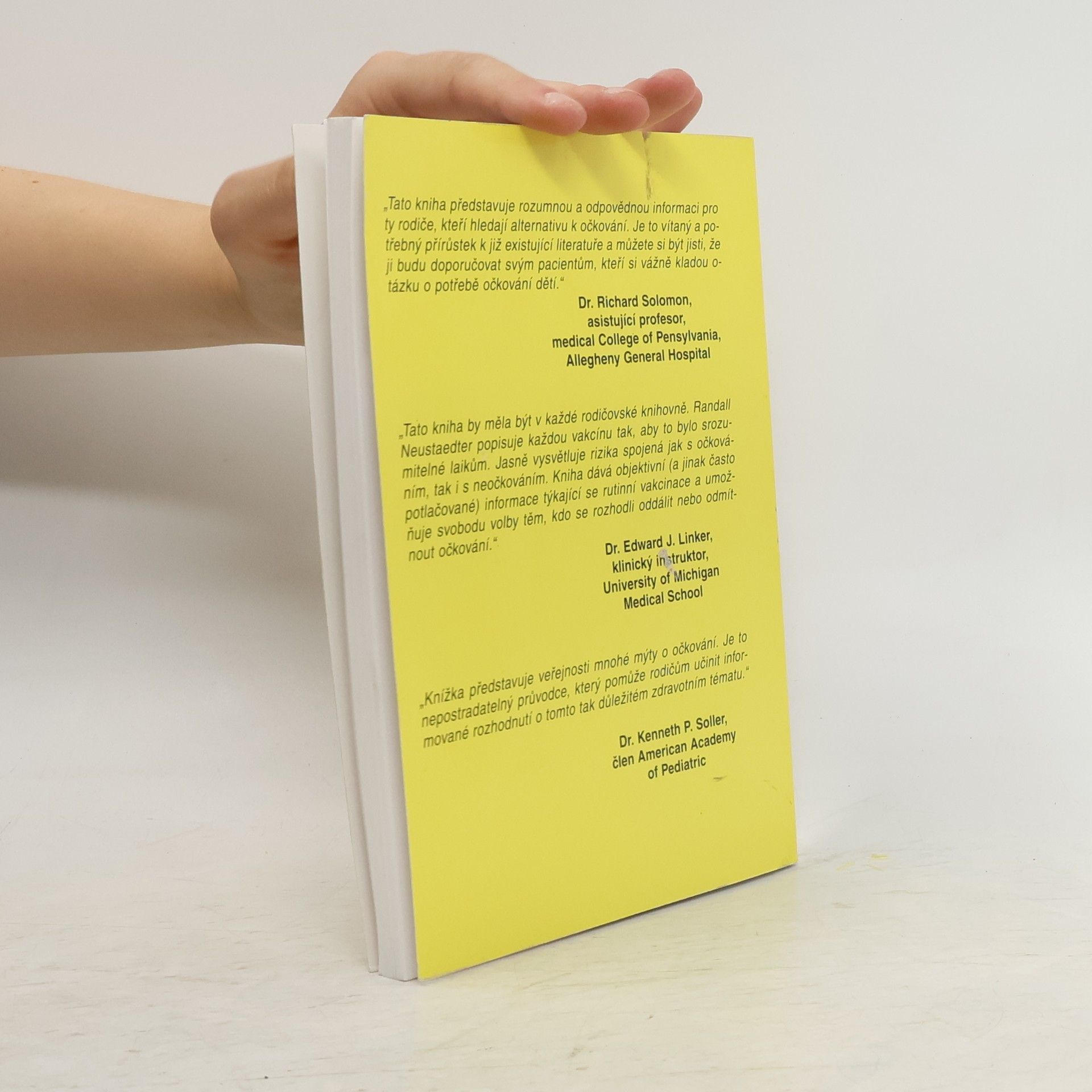 Autor je doktor orientální medicíny (OMD) a v této stručné příručce dává návod podle čeho volit jednotlivá očkování, v krátkosti se zabývá jednotlivými infekčními nemocemi, jejich komplikacemi, účinností očkovací látky a reakcemi na ni. Kniha je z roku 1995 a jako první v češtiněse v ní objevily informace o vedlejších účincích vakcín, některé údaje o očkovacích látkách mohou být zastaralé. Záměr autora je poskytnout rodičům prvotní informace k tomu, aby mohli sami zvolit, co je pro jejich dítě nejlepší.
