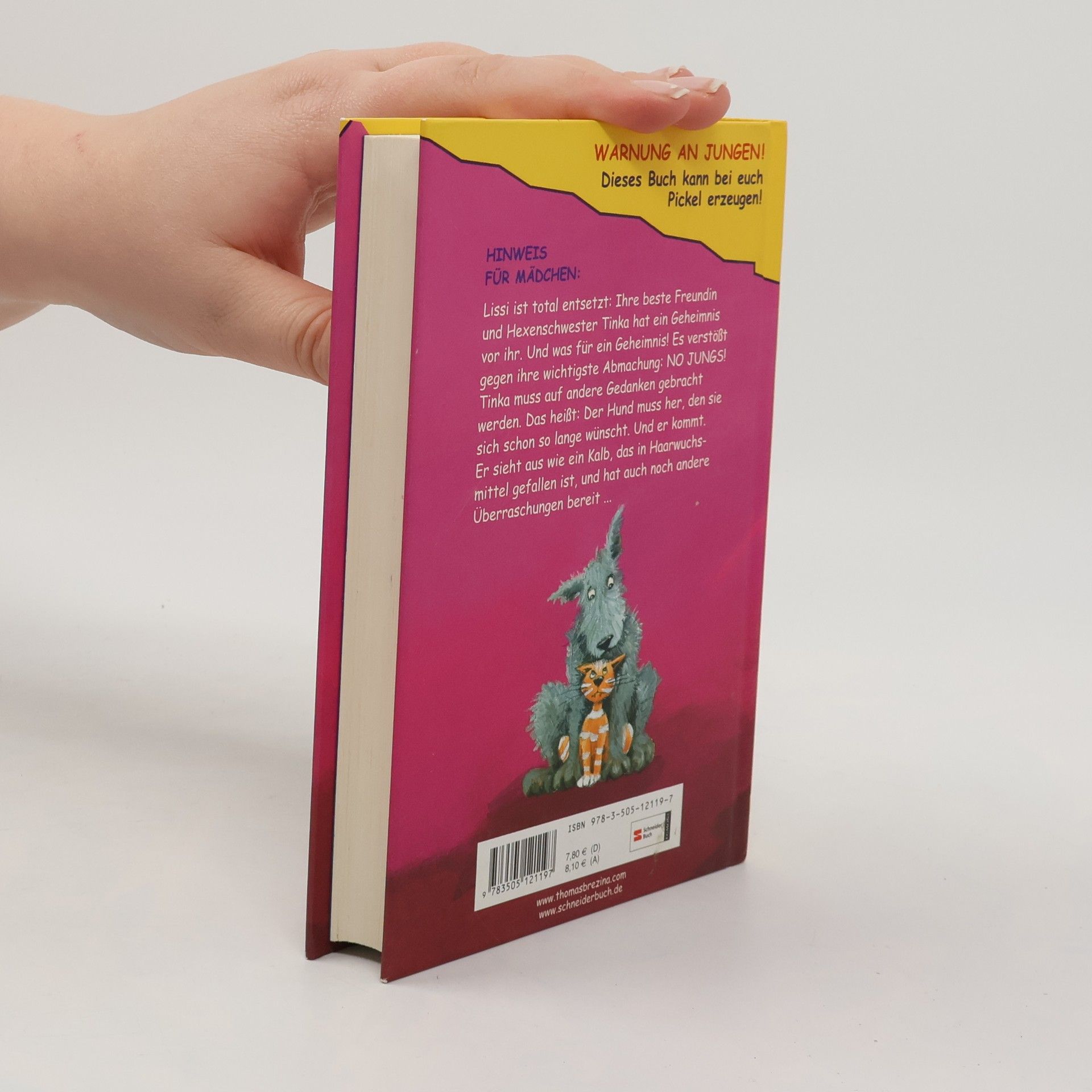 Lissi ist total entsetzt: Ihre beste Freundin und Hexenschwester Tinka hat ein Geheimnis vor ihr! Und was für ein Geheimnis! Es verstößt gegen ihre wichtigste Abmachung: NO JUNGS! Tinka muss auf andere Gedanken gebracht werden. Das heißt: Der Hund muss her, den sie sich schon so lange wünscht. Und er kommt. Er sieht aus wie ein Kalb, das in Haarwuchsmittel gefallen ist, und hat auch noch andere Überraschungen bereit ... Freundinnen für immer? Auch wenn die erste große Liebe auftaucht?