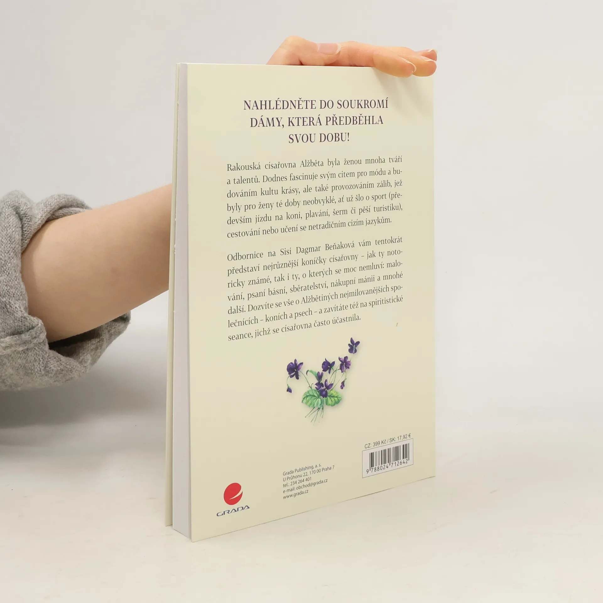 NAHLÉDNĚTE DO SOUKROMÍ DÁMY, KTERÁ PŘEDBĚHLA SVOU DOBU! Rakouská císařovna Alžběta byla ženou mnoha tváří a talentů. Dodnes fascinuje svým citem pro módu a budováním kultu krásy, ale také provozováním zálib, jež byly pro ženy té doby neobvyklé, ať už šlo o sport (především jízdu na koni, plavání, šerm či pěší turistiku), cestování nebo učení se netradičním cizím jazykům. Odbornice na Sisi Dagmar Beňaková vám tentokrát představí nejrůznější koníčky císařovny – jak ty notoricky známé, tak i ty, o kterých se moc nemluví: malování, psaní básní, sběratelství, nákupní mánii a mnohé další. Dozvíte se vše o Alžbětiných nejmilovanějších společnících – koních a psech – a zavítáte též na spiritistické seance, jichž se císařovna často účastnila