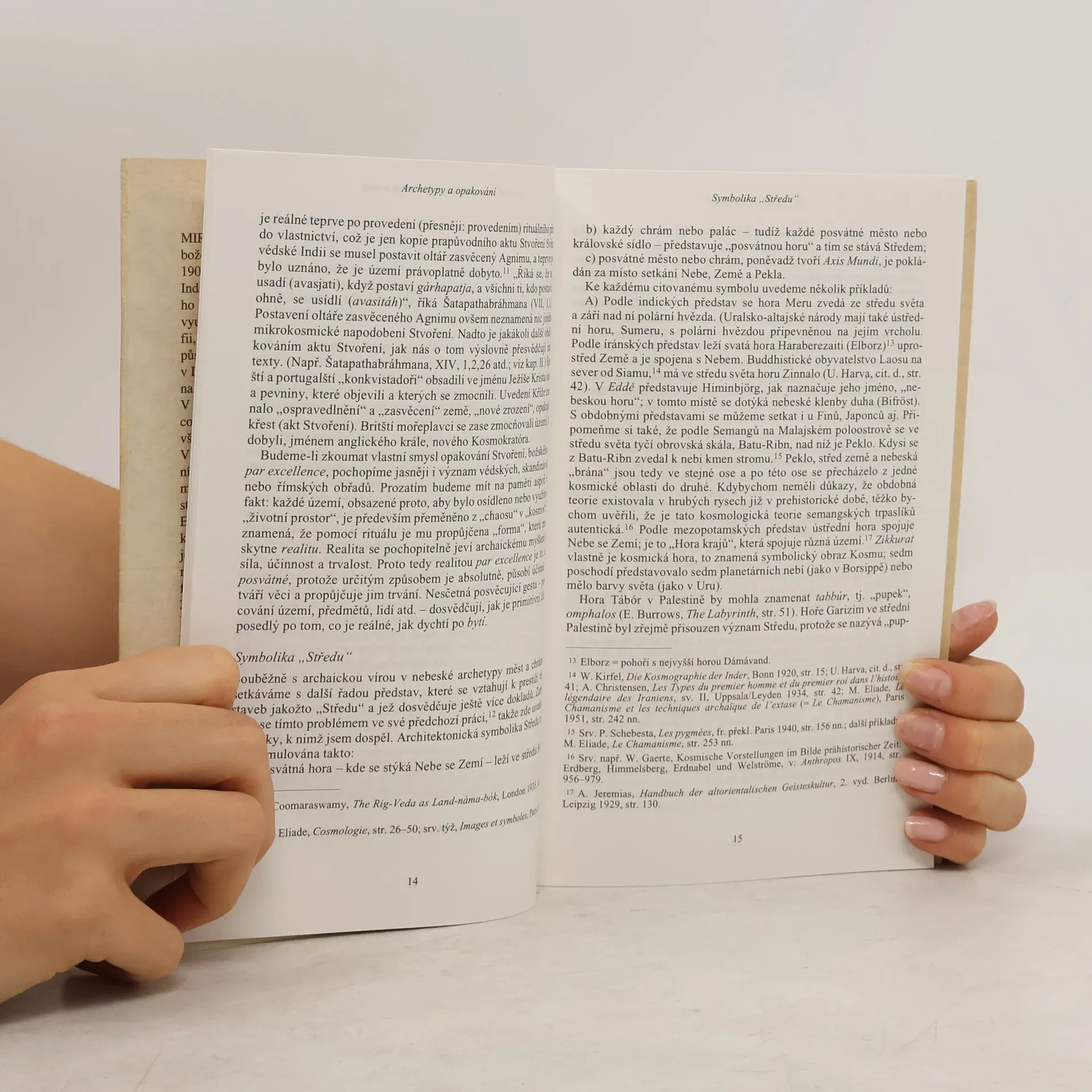 V této knize si Eliade klade otázky po smyslu historické existence člověka. Jak sám uvádí v předmluvě, vhodným podtitulem knihy by mohl být „Úvod do filosofie dějin“. Není to však spekulativní analýza pojmu dějin, ale zkoumání základních představ o světě v tzv. archaických společnostech, které sice žijí své dějiny, ale snaží se od nich odhlížet, dokonce je popírat. Archaický člověk, který je pro Eliadeho šifrou pro náboženského člověka vůbec, věří, že profánní svět konkrétních lidských dějin je úpadkovým způsobem existence. Skutečný a smysluplný je pouze mytický čas absolutního počátku, kdy všechno bylo „nové“. Pouze účastí na posvátném světě bohů a héroů, který zde byl „v onom čase“ (in illo tempore), člověk skutečně jest, a pouze opakováním počátečních vzorů jejich jednání nabývá smyslu i jeho jednání. Dějinný pobyt člověka se stává snesitelným jen periodickým obnovováním světa, tedy „věčným návratem“ k prvotním paradigmatům, archetypům, a jejich reaktualizací. Přeložila E. Strebingerová. Nové vydání 2019.