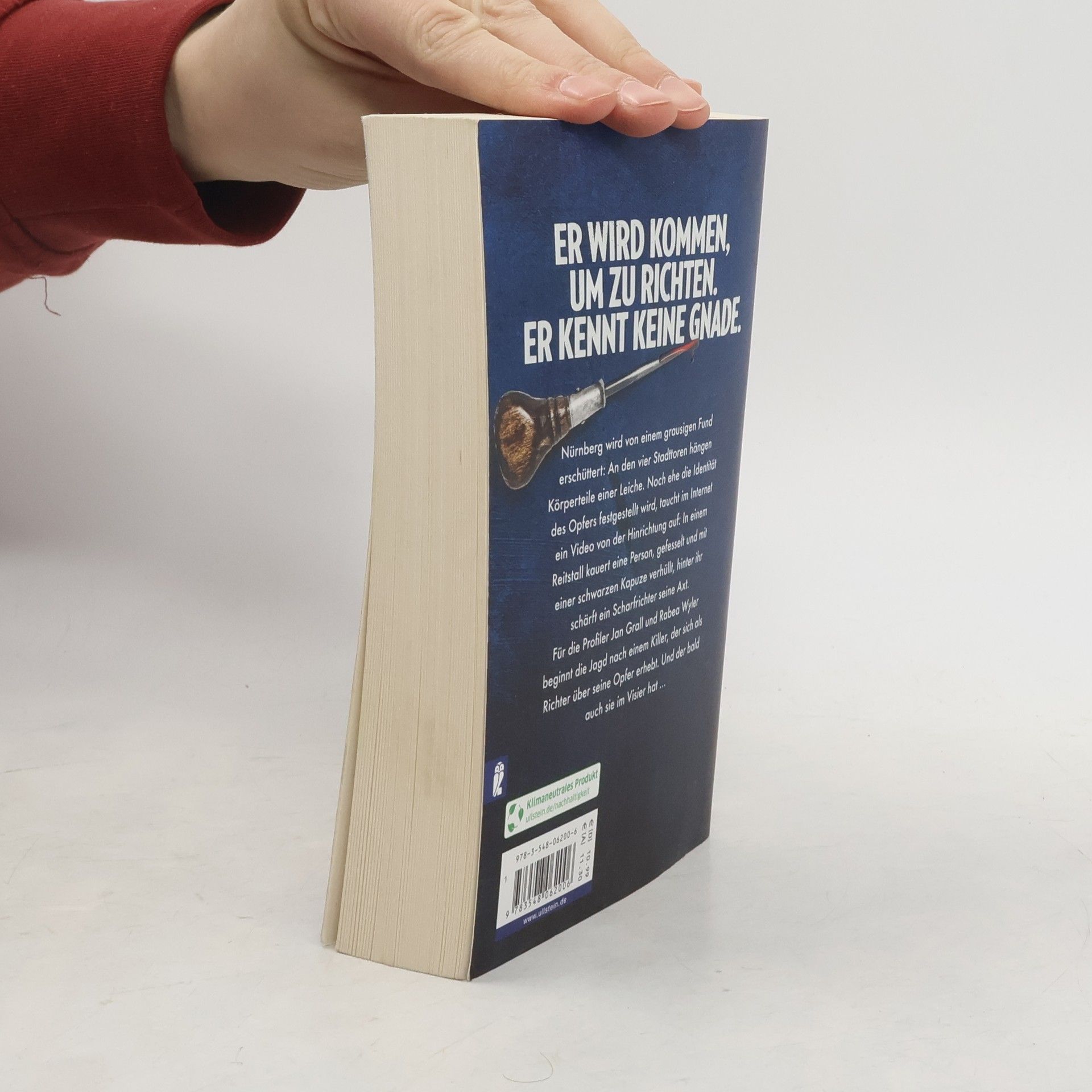 Er wird kommen, um zu richten ... Nürnberg wird von einem grausigen Mord erschüttert: An den Stadttoren hängen die viergeteilten Körperteile einer Leiche. Noch ehe die Identität des Opfers festgestellt werden kann, taucht im Internet ein Livestream auf: In einem Gewölbe kauert eine Person, gefesselt und mit einer schwarzen Kapuze verhüllt, hinter ihr schärft ein Scharfrichter seine Axt. Für die Profiler Jan Grall und Rabea Wyler beginnt die Jagd nach einem Killer, der sich als Richter über seine Opfer erhebt. Und der bald auch sie im Visier hat …