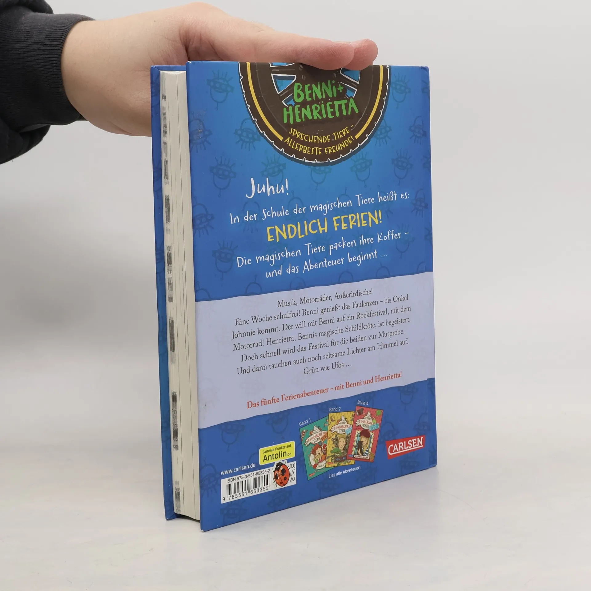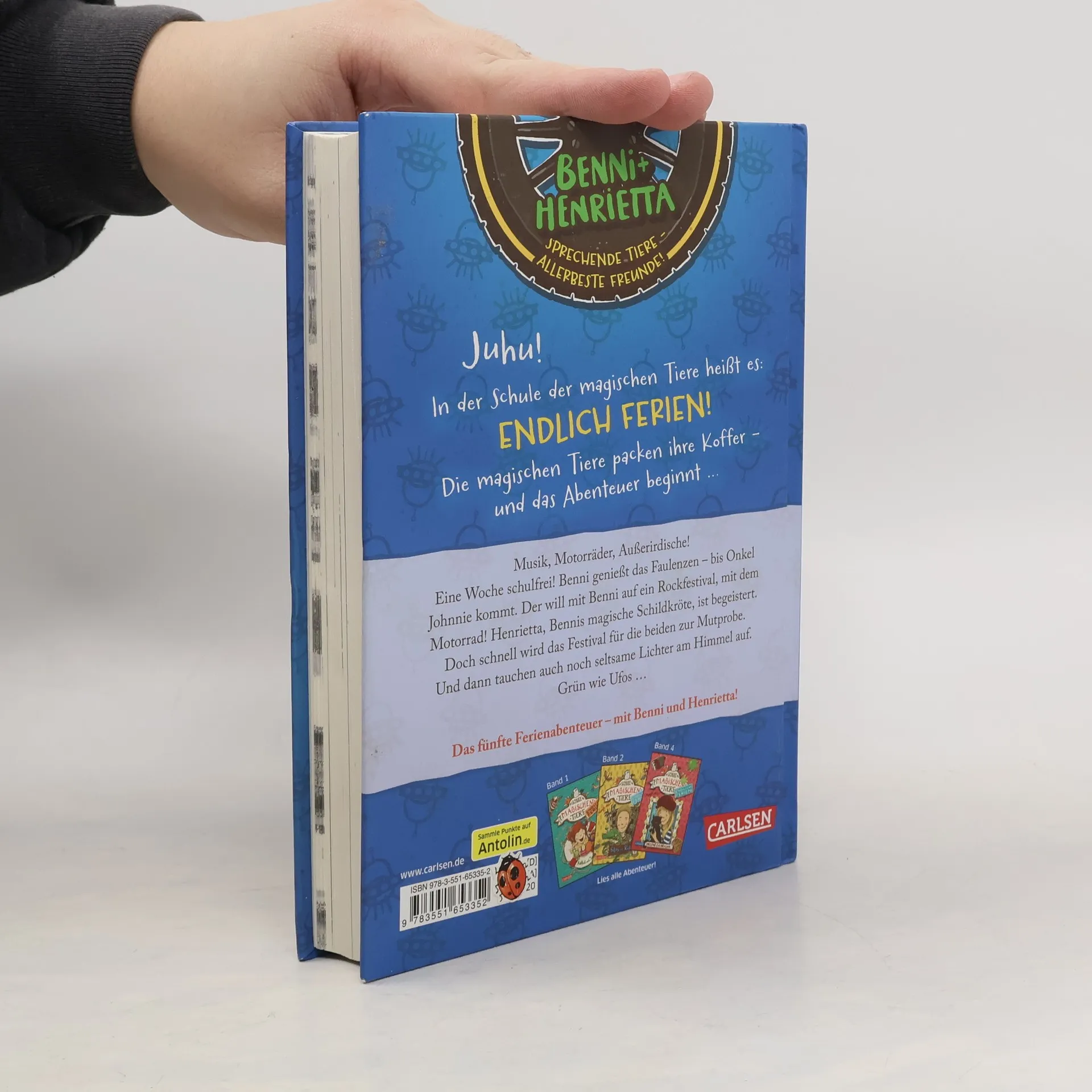 *** Ab in die Ferien – mit einem sprechenden, magischen Tier! *** BAND 5: Eine Woche schulfrei! Benni genießt das Faulenzen – bis Onkel Johnnie kommt. Der will mit Benni auf ein Rockfestival, mit dem Motorrad! Henrietta, Bennis magische Schildkröte, ist begeistert. Doch schnell wird das Festival für die beiden zur Mutprobe. Und dann tauchen auch noch seltsame Lichter am Himmel auf. Grün wie Ufos ... DIE SCHULE DER MAGISCHEN TIERE - ENDLICH FERIEN: In der Schule der magischen Tiere heißt es: Endlich Ferien! Die magischen Tiere packen ihre Koffer – und das Abenteuer beginnt ...