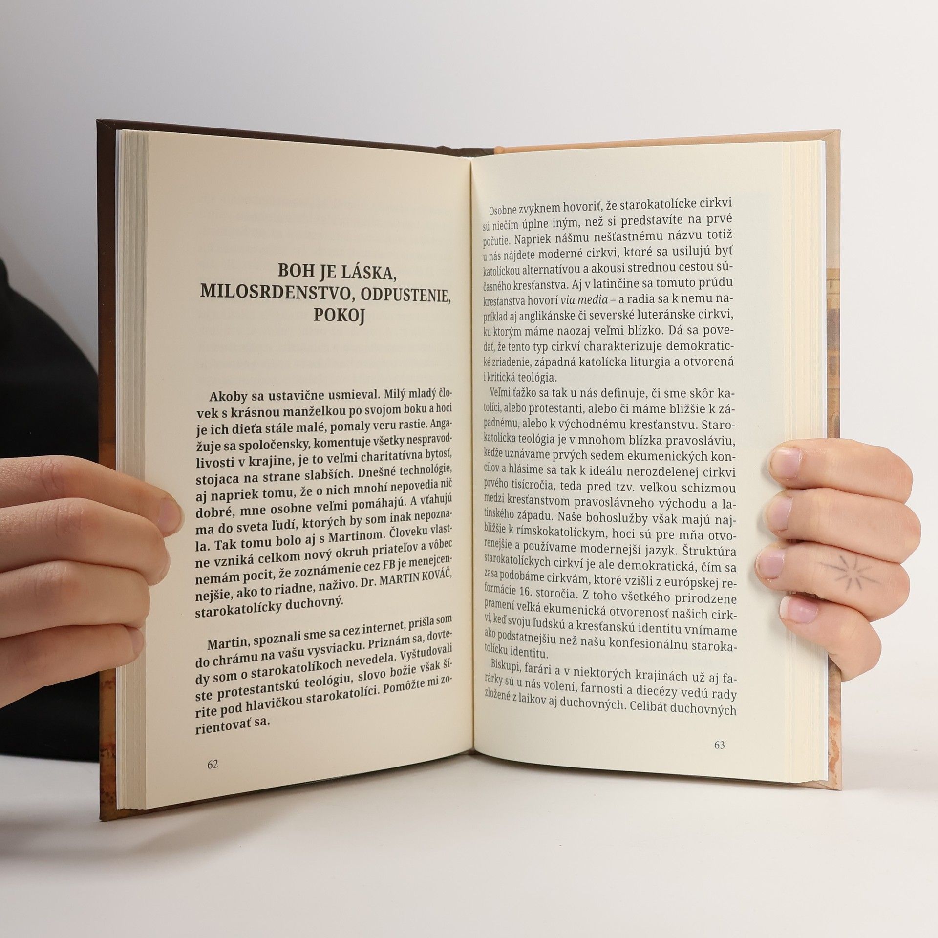 Spisovateľ Ľubo Dobrovoda, jaskyniar Bohuslav Kotrman, novinár Erik Kollárik, dramaturg Vladimír Predmerský, podnikateľ Radovan Grohoľ, Peter Osuský, duchovný Martin Kováč, redaktorka Naďa Földváryová, profesor Ján Vladimír Michalko, Anna Dojčanová – rozprávajú o svojej viere, o Bohu, o svojej cirkvi, o tradíciach a hodnotách, ktoré vyznávajú. Spája ich protestantská viera. Keď sa pýtame prečo by sme mali poznať názory ľúdí možno aj iného vierovyznania ako je naše, židovský rabín nám hneď v úvode knihy odpovedá: „Lebo sme susedia, lebo naše deti sa spolu hrajú, lebo ja verím, že moderný človek musí spoznávať iných ľudí, aby im neublížil a mohol ich pochopiť.“