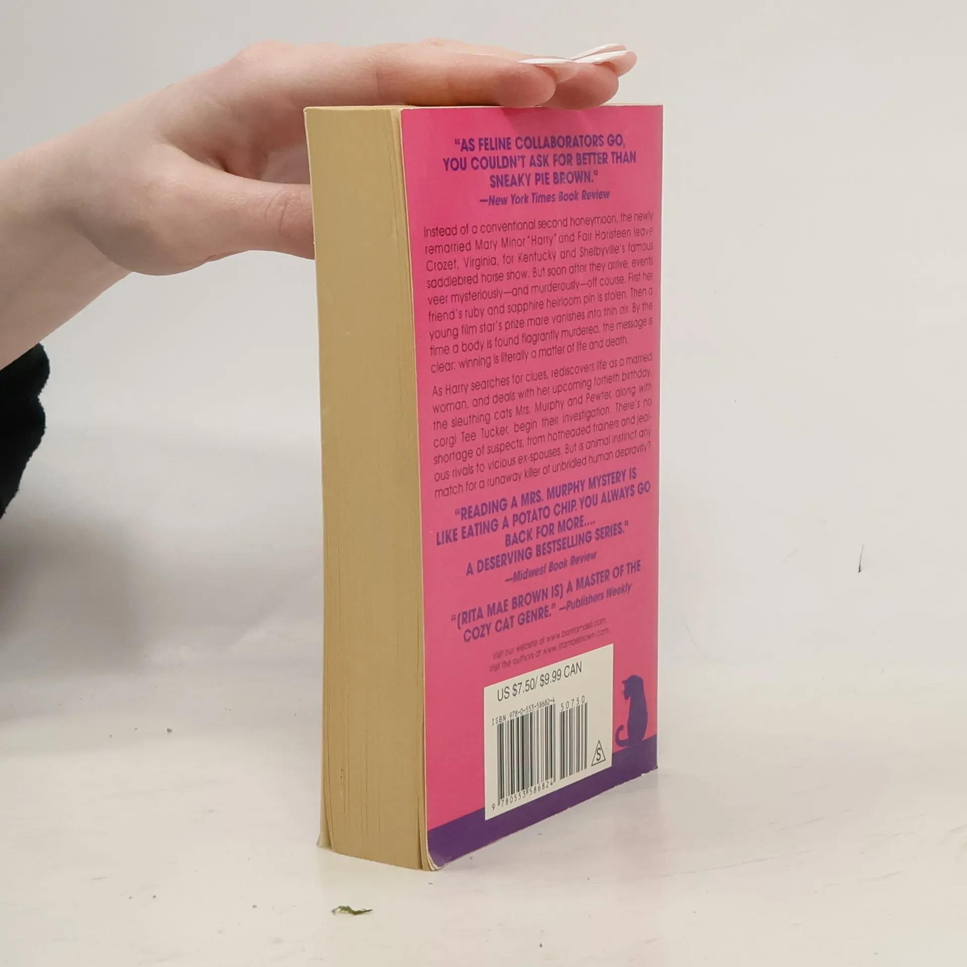 The famous Saddlebred show in Shelbyville, Kentucky, is the perfect opportunity for remarried newlyweds Harry and Fair Haristeen to finally go on their long-delayed (second) honeymoon-a chance to combine business and pleasure, as well as to drop in on some old friends. Mrs. Murphy (a tabby cat), Tucker (a Corgi), and Pewter (a fat gray kitty) are all along for the trip as well, and when their hosts are robbed the very first day they arrive, Mrs. Murphy pounces right on solving the mystery. Soon, however, they are all sidetracked by even bigger crimes: a $200,000 mare owned by a young film star is stolen in broad daylight, and worst of all, a groom is found murdered. Clearly, winning at Shelbyville is secondary; first prize is survival