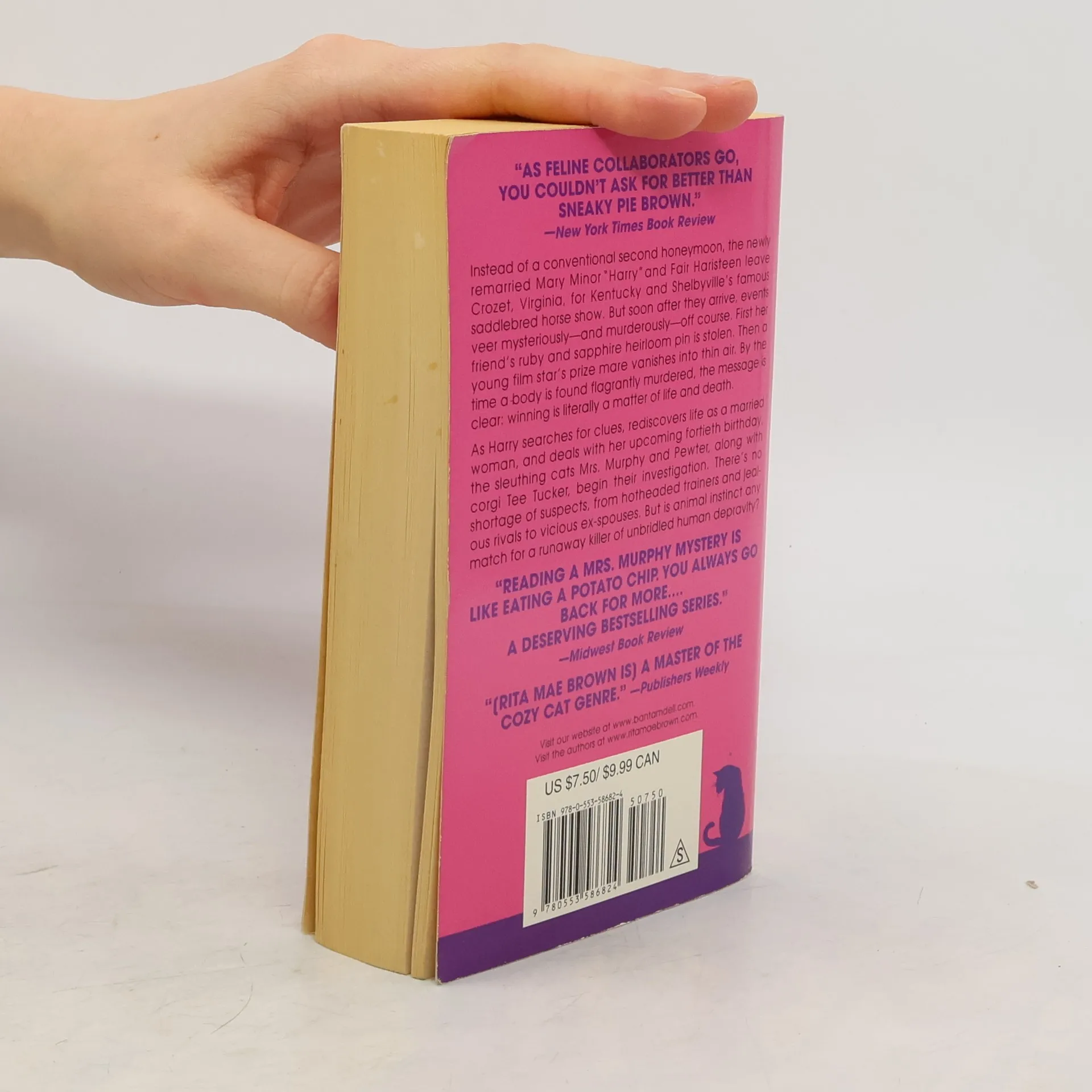The famous Saddlebred show in Shelbyville, Kentucky, is the perfect opportunity for remarried newlyweds Harry and Fair Haristeen to finally go on their long-delayed (second) honeymoon-a chance to combine business and pleasure, as well as to drop in on some old friends. Mrs. Murphy (a tabby cat), Tucker (a Corgi), and Pewter (a fat gray kitty) are all along for the trip as well, and when their hosts are robbed the very first day they arrive, Mrs. Murphy pounces right on solving the mystery. Soon, however, they are all sidetracked by even bigger crimes: a $200,000 mare owned by a young film star is stolen in broad daylight, and worst of all, a groom is found murdered. Clearly, winning at Shelbyville is secondary; first prize is survival