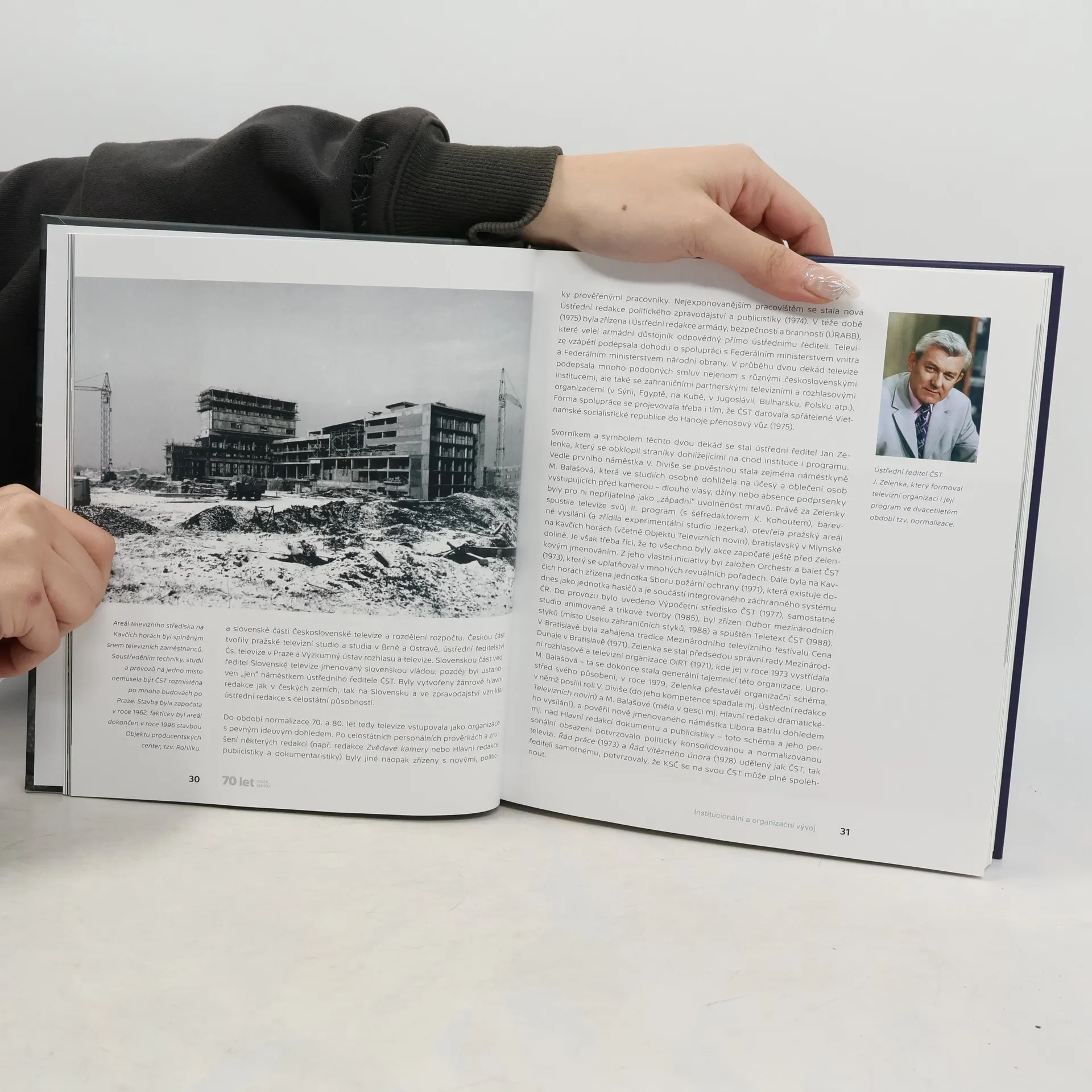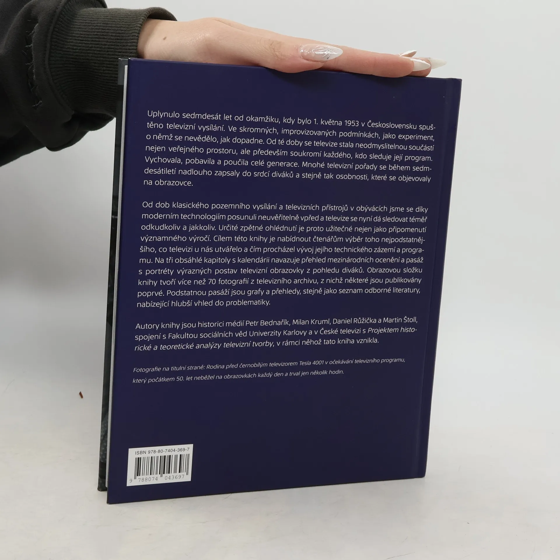 Reprezentativní publikace k 70. výročí zahájení televizního vysílání v Československu. Cílem knihy je nabídnout čtenářům výběr toho nejpodstatnějšího, co televizi u nás utvářelo a čím procházel vývoj jejího technického zázemí a programu. Na tři obsáhlé kapitoly s kalendáři navazuje přehlede mezinárodních ocenění a pasáž s portréty výrazných postav televizní obrazovky z pohledu diváků. Obrazovou složku knihy tvoří více než 70 fotografií z televizního archivu, z nichž některé jsou publikovány poprvé. Podstatnou pasáží jsou grafy a přehledy, stejně jako seznam odborné literatury, nabízející hlubší vhled do problematiky.