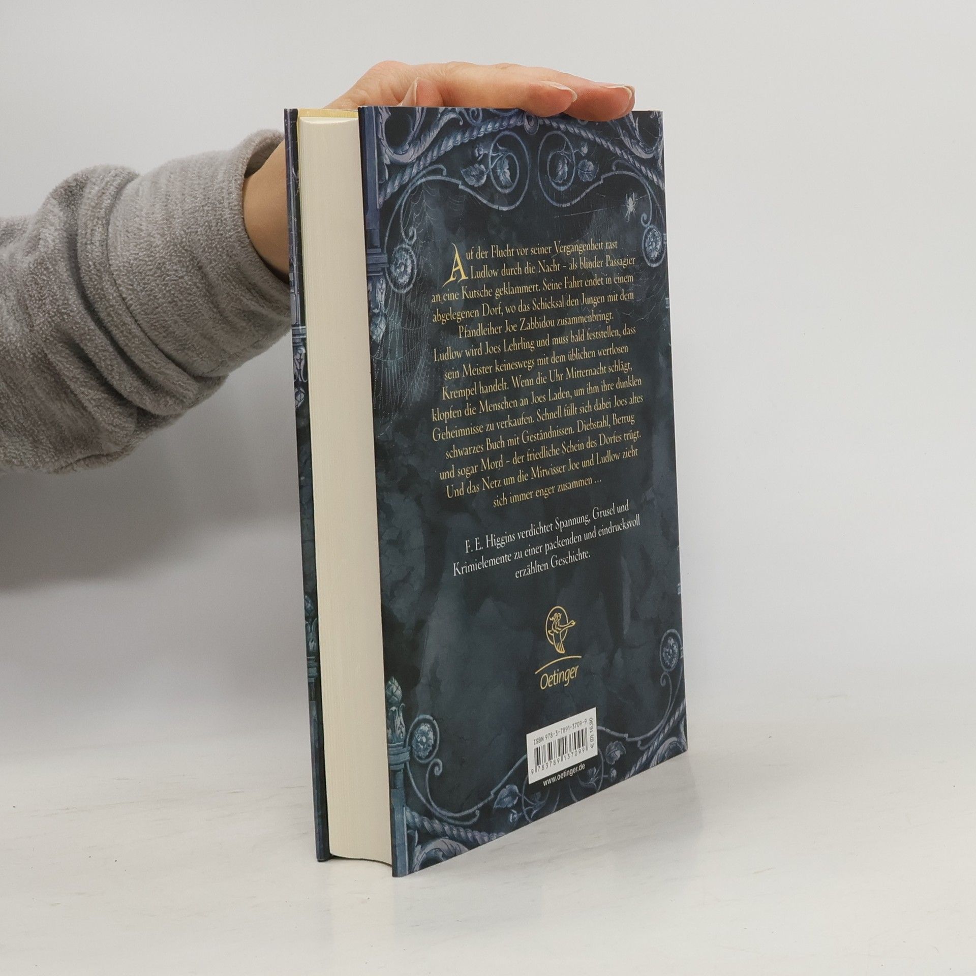 Unwiderstehlich gruselig: das Buch von Licht und Schatten Auf der Flucht vor seiner Vergangenheit rast Ludlow durch die Nacht, als blinder Passagier an eine Kutsche geklammert. Schließlich wird der Junge Lehrling beim Pfandleiher Joe Zabbidou, der einen besonderen Handel treibt: Er kauft Geheimnisse und trägt sie in sein schwarzes Buch ein. Aber die Dorfbewohner wollen nicht nur ihr Gewissen erleichtern, sondern sehen in Joe den Retter, der sie von dem grausamen Grundbesitzer Ratchet befreit. Bald reicht es ihnen nicht mehr, ihre Schuld zu verkaufen, und sie erwarten mehr von Joe. Doch auch Ludlow verbirgt ein Geheimnis. Das Netz um die beiden zieht sich immer enger zusammen … Rätsel, Krimi, Spannung! Ein außergewöhnlicher Roman, super spannend und literarisch zugleich. Aufwendig ausgestattet, Cover mit Goldprägung. „Wunderbar! Higgins hat eine einzigartige, unheimliche Welt erschaffen, vergleichbar mit Dickens oder Peake.“ (Eoin Colfer)