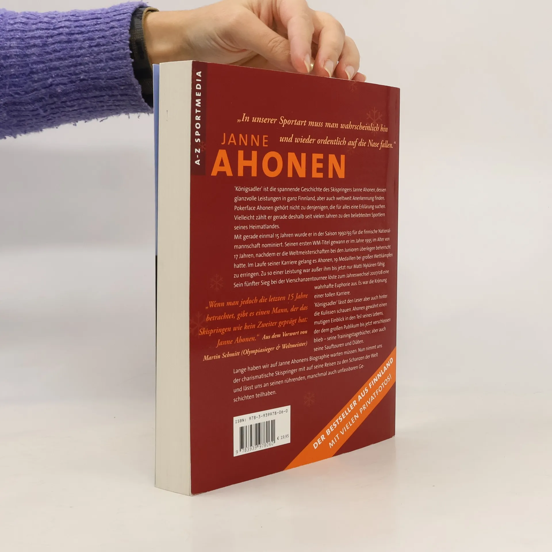 Nach dem großen Erfolg im Sommer 2009 in Finnland erscheint dieses Enthüllungsbuch nun auch in Deutschland. Janne Ahonen, 5mal Gewinner der Vierschanzen-Tournee und damit alleiniger Rekordhalter - Weltmeister - Skisprunglegende bricht sein Schweigen. Er spricht Klartext, schonungslos nimmt er den Leser hinter die Kulissen dieses Sports mit. Das Ganze kombiniert mit vielen privaten Farbbildern machen dieses Werk ein sehr nahegehendes Buch. Das perfekte Buch für den Wintersport-Fan vor den Olympischen Spielen in Vancouver 2010 und für jeden, der sich Skispringen im Fernsehen anschaut! Mit Vorworten von Dirk Thiele und Martin Schmitt.