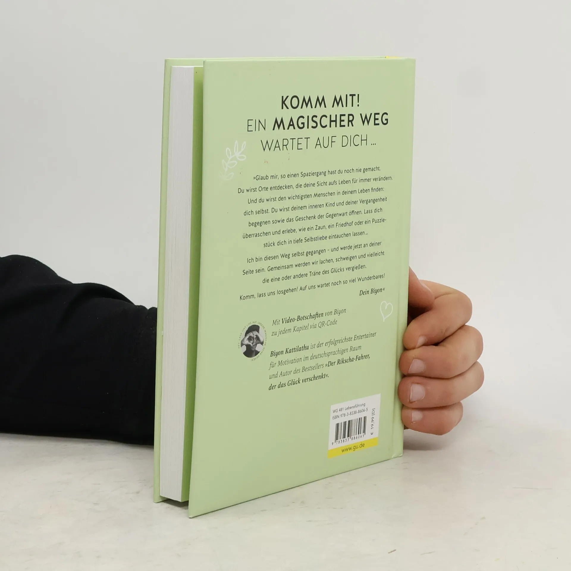 Komm mit auf einen Spaziergang, den du so noch nie erlebt hast! "Ich werde an deiner Seite sein. Gemeinsam mit dir lachen, schweigen und vielleicht die eine oder andere Träne des Glücks vergießen.“ Biyon lädt hier aber nicht zu einem normalen Spaziergang ein. Auf dem Weg durch Wald, Wiesen und Täler, an Bauchläufen entlang und über sonnige Lichtungen lernst du, mit der Vergangenheit abzuschließen und mutig deinen eigenen Weg zu gehen. Du begegnest deinem inneren Kind und machst eine Reise zu mehr Achtsamkeit und Selbstliebe. Am Ende des Pfades kommst du nicht an einem Ort an, sondern bei einem Menschen … und dieser Mensch bist DU! Wundervolle Begegnungen, humorvolle Augenblicke und inspirierende Geschichten warten auf dich. Immer an deiner Seite: Biyon Kattilathu, der es sich zur Aufgabe gemacht hat, das Leben anderer zu berühren und ein wenig schöner zu machen. Vielleicht entdeckst du auf diesem Spaziergang mit ihm das Glück in dir selbst ...! On Top: In jedem Kapitel findest du einen Video-Link zu einer kleinen Challenge, die Biyon persönlich anleitet. Damit du das Gelesene auch in die Tat umsetzen kannst - und wirklich positive Veränderungen in deinen Alltag einziehen.