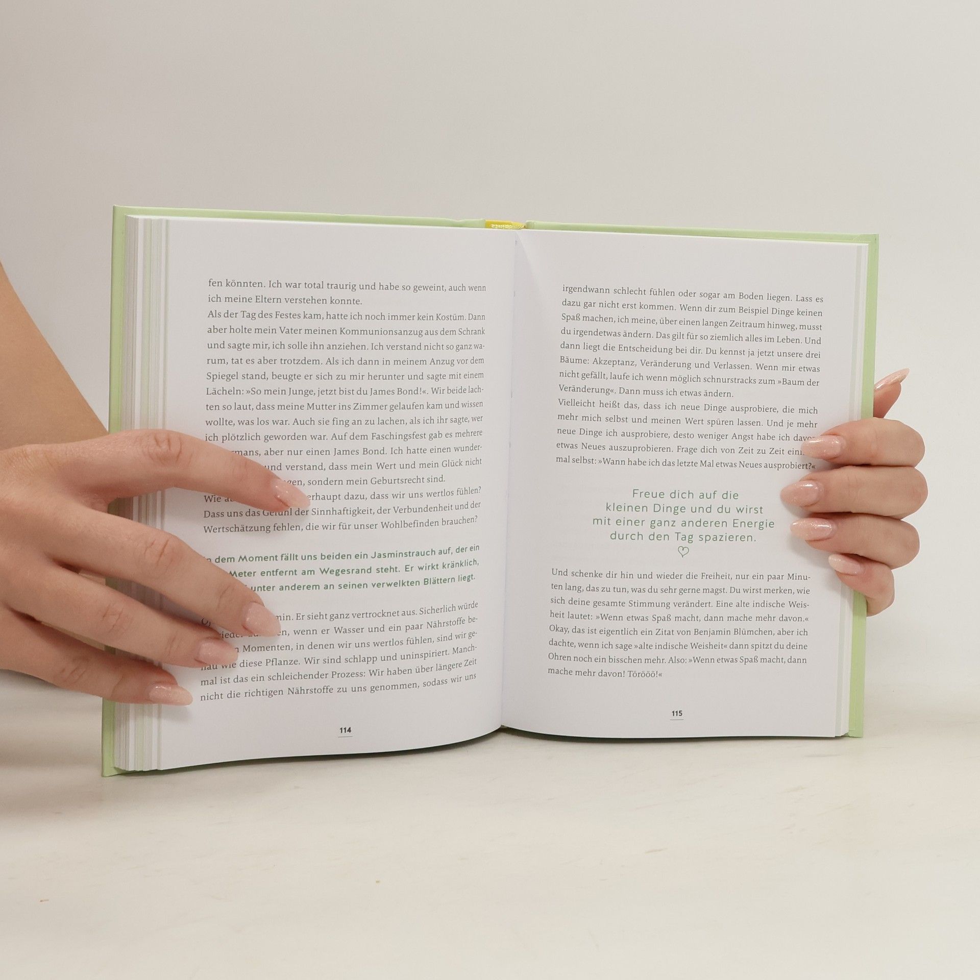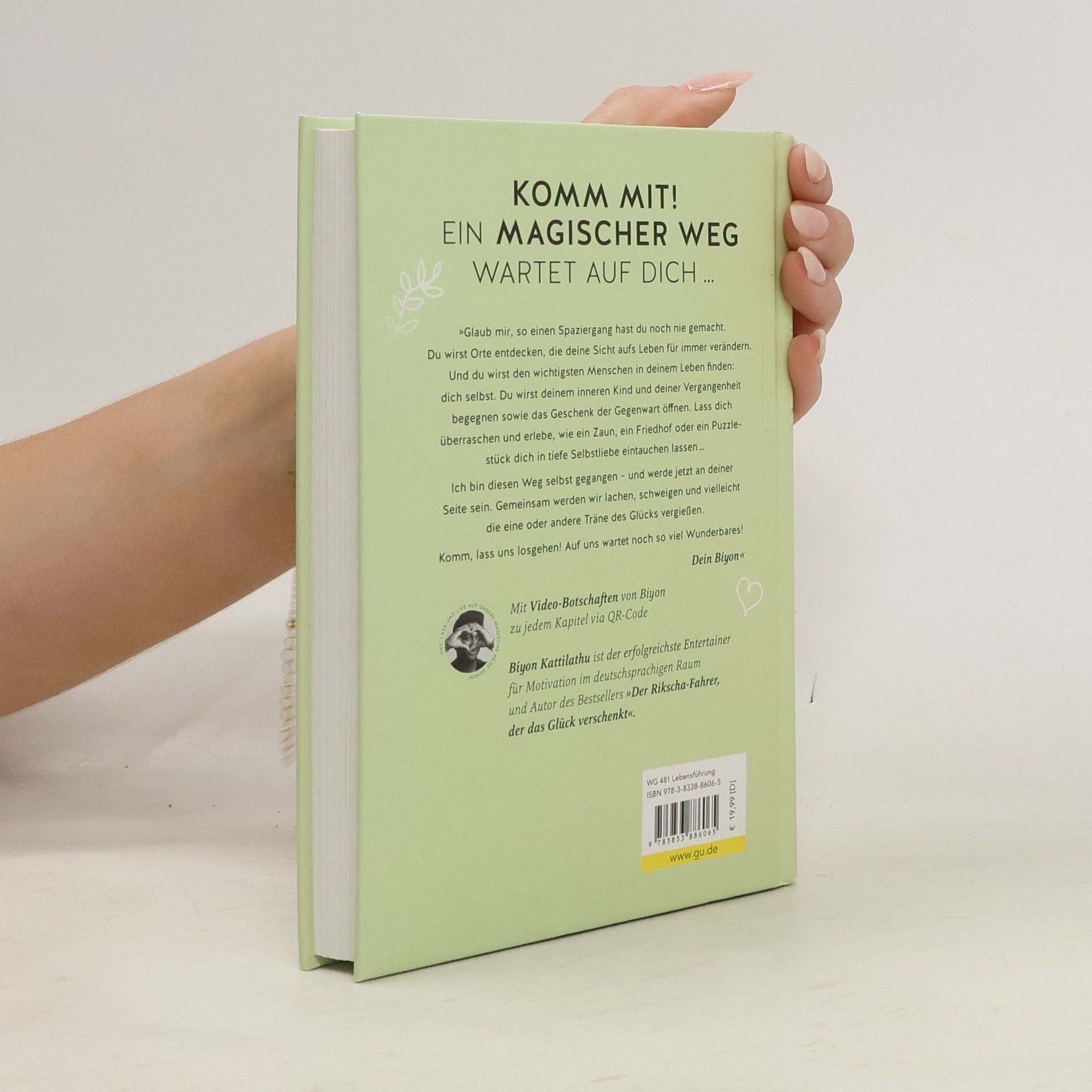 Komm mit auf einen Spaziergang, den du so noch nie erlebt hast! "Ich werde an deiner Seite sein. Gemeinsam mit dir lachen, schweigen und vielleicht die eine oder andere Träne des Glücks vergießen.“ Biyon lädt hier aber nicht zu einem normalen Spaziergang ein. Auf dem Weg durch Wald, Wiesen und Täler, an Bauchläufen entlang und über sonnige Lichtungen lernst du, mit der Vergangenheit abzuschließen und mutig deinen eigenen Weg zu gehen. Du begegnest deinem inneren Kind und machst eine Reise zu mehr Achtsamkeit und Selbstliebe. Am Ende des Pfades kommst du nicht an einem Ort an, sondern bei einem Menschen … und dieser Mensch bist DU! Wundervolle Begegnungen, humorvolle Augenblicke und inspirierende Geschichten warten auf dich. Immer an deiner Seite: Biyon Kattilathu, der es sich zur Aufgabe gemacht hat, das Leben anderer zu berühren und ein wenig schöner zu machen. Vielleicht entdeckst du auf diesem Spaziergang mit ihm das Glück in dir selbst ...! On Top: In jedem Kapitel findest du einen Video-Link zu einer kleinen Challenge, die Biyon persönlich anleitet. Damit du das Gelesene auch in die Tat umsetzen kannst - und wirklich positive Veränderungen in deinen Alltag einziehen.