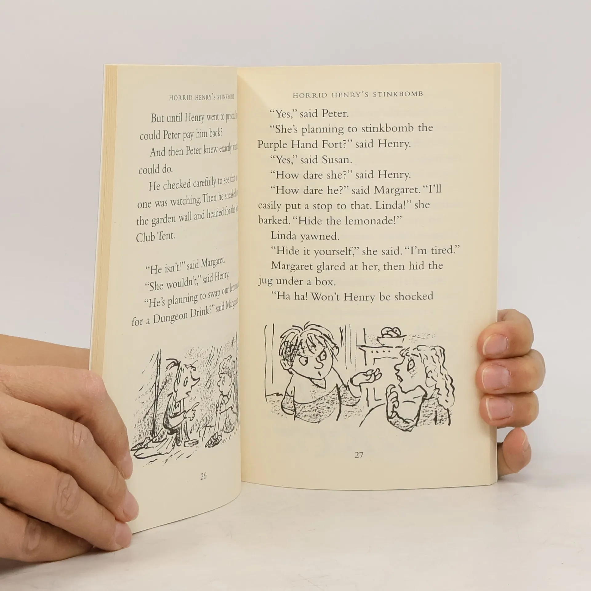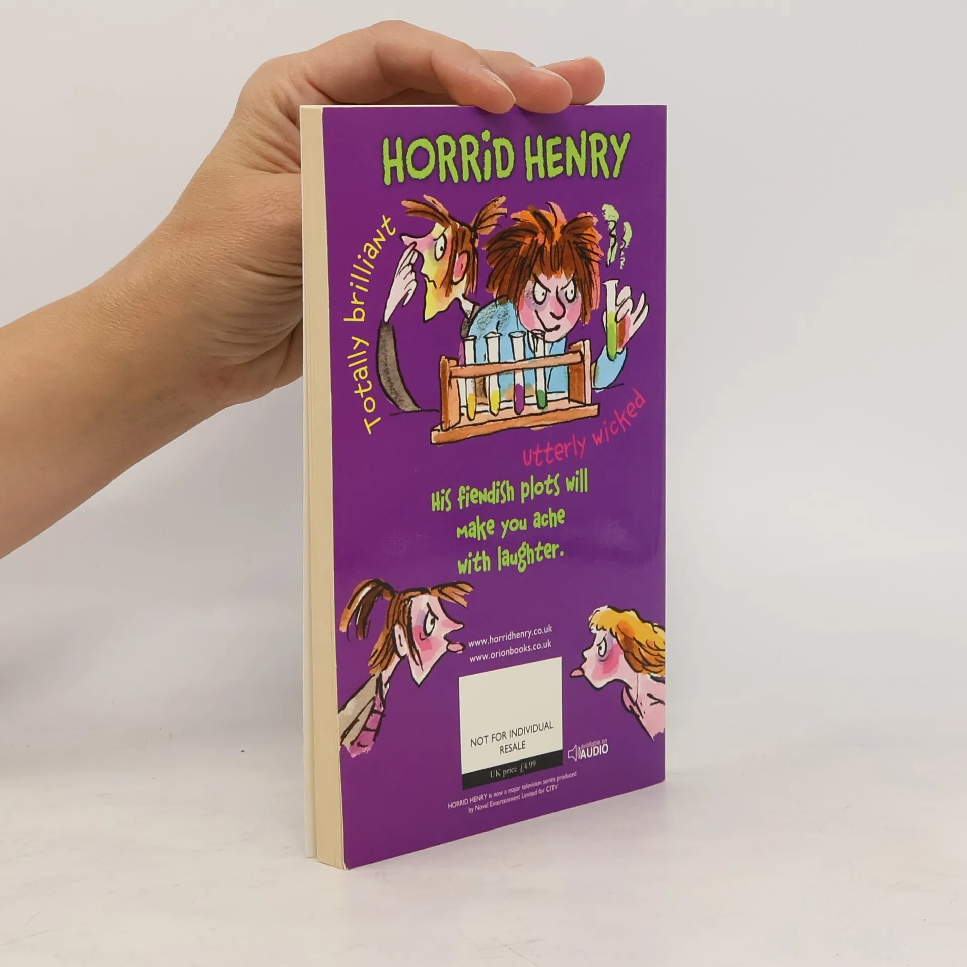 A stinkbomb becomes a deadly weapon in Horrid Henry's long-running war with Moody Margaret; he uses all his guile to win the school reading competition, only to find the longed-for prize is not what he expected; he goes for a sleepover and retreats in horror when he finds that other people's houses aren't always as nice as his own; and he has the joy of seeing Miss Battle-Axe ticked off by the Head when he knows it was all his fault. In short, another vintage HORRID HENRY title!