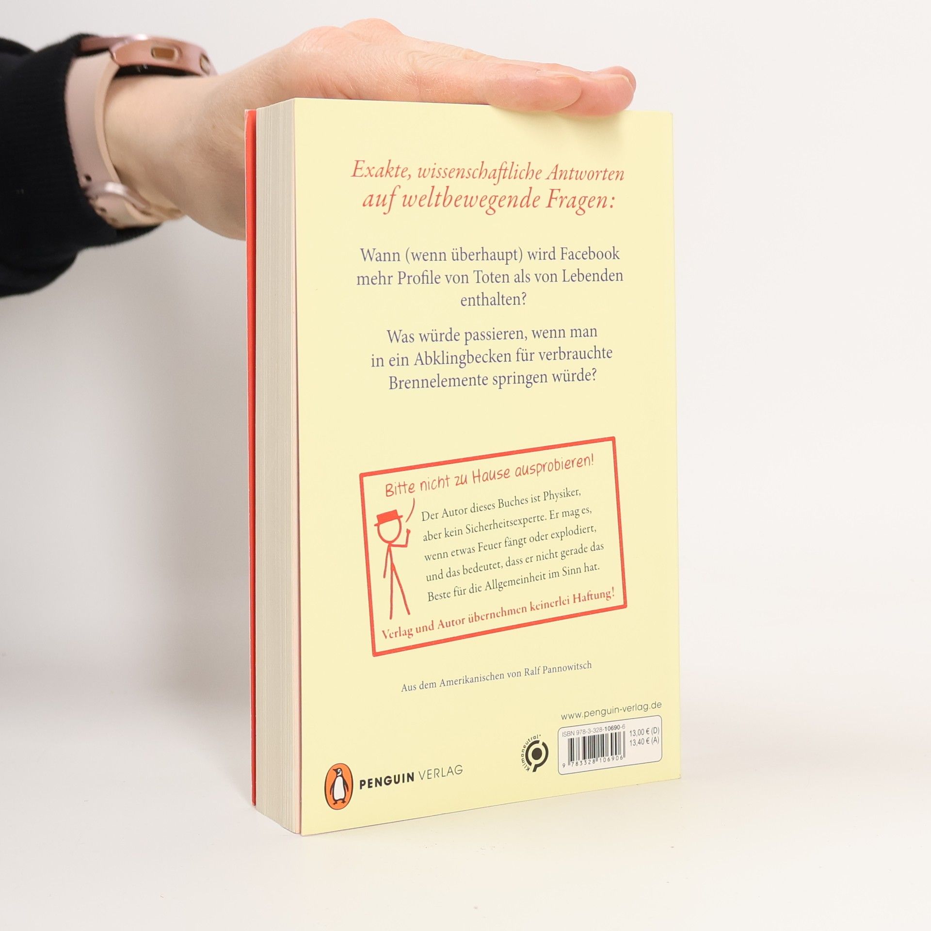 Antworten auf Fragen, die Sie sich vermutlich noch nie gestellt haben Wenn man eine zufällige Nummer wählt und »Gesundheit« sagt, wie hoch ist die Wahrscheinlichkeit, dass der Angerufene gerade geniest hat? Randall Munroe beantwortet die verrücktesten Fragen hochwissenschaftlich und umwerfend kreativ. Von der Anzahl an Menschen, die den täglichen Kalorienbedarf eines Tyrannosaurus decken würden bis zum Erlebnis, in einem Mondsee zu schwimmen: Illustriert mit Munroes berühmten Strichzeichnungen, bietet what if? originelle Unterhaltung auf höchstem Niveau. Jetzt in der Neuausgabe mit zusätzlichen Kapiteln.