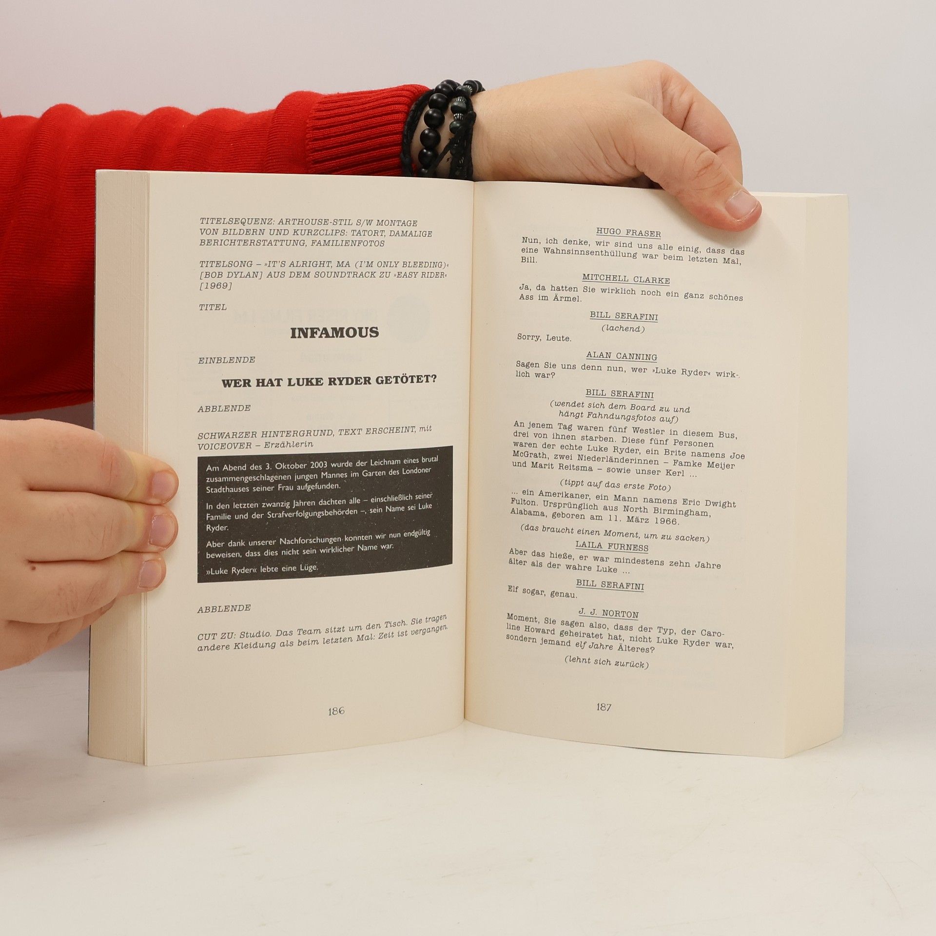 Eine Leiche. Sechs Experten. Kannst du den Fall vor ihnen lösen? Ein ungeklärter Cold Case. Eine bahnbrechende TV-Show. Es war ein Fall, der die ganze Nation bewegte und doch nie aufgeklärt wurde: Dezember 2003, Luke Ryder wird ermordet im Garten des Familienhauses in London aufgefunden und hinterlässt eine wohlhabende ältere Witwe und drei Stiefkinder. Niemand hat etwas gesehen. Doch jetzt, Jahre später, werden die Geheimnisse live vor der Kamera gelüftet. Eine Gruppe von Experten untersucht in der True-Crime-Show ›Infamous‹ erneut die Beweise – mit schockierenden Ergebnissen. Weiß das Team mehr, als es zugegeben hat? Liegt die Wahrheit vielleicht ganz nahe? Und vor allem: Kannst du den Fall vor den Experten lösen? Perfekt für Fans von True Crime und außergewöhnlichen, spannenden Krimis. Der BookTok-Bestseller! Dieser Krimi ist etwas Besonders: Durch einen Mix aus Skripten, Zeitungsartikeln, Chatverläufen und Beweisstücken aller Art erhält man Informationen genau zur selben Zeit wie die Experten, sodass man hautnah am Geschehen beteiligt ist und gleich selbst mitermitteln kann. »Dieser teuflisch kluge, bahnbrechende Roman lässt einen nicht mehr los.« Ian Rankin »Eine großartige Idee, meisterhaft ausgeführt – eine Wundertüte an Buch.« JP Delaney »Ein exzellenter, absolut neuartiger Whodunnit!« Gilly MacMillan