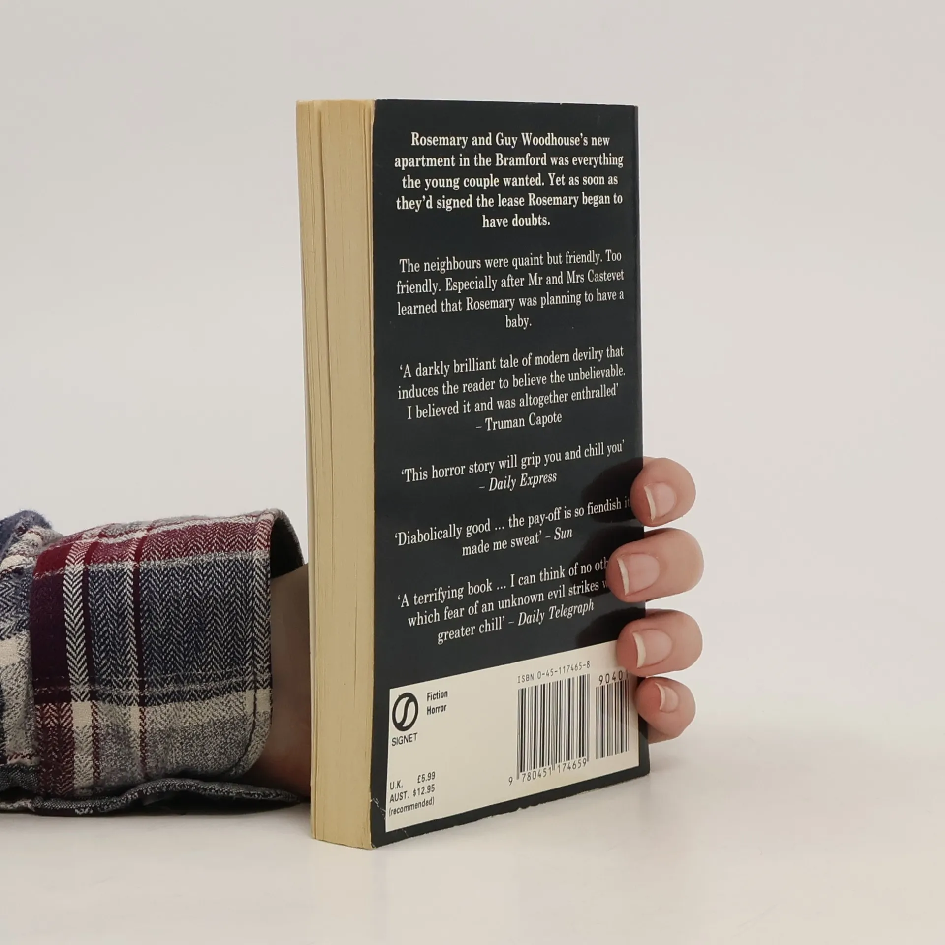 بچهٔ رُزمری، رمانی کوتاه یا داستانی بلند، از یکی از بهترین نمونههای ایجاد تعلیق میان وهم و واقعیت است. فیلمی درخشان که رومن پولانسکی از روی آن ساخت در بسیاری موارد برگردانِ سطربهسطر و حتی کلمه به کلمهٔ رمان آیرا لوین به تصویر است پرداختن به فراواقعی معمولاً با دلهره و سایهروشنهایی پررمزوراز همراه است. بچهٔ رُزمری دلهرهٔ ماوراء طبیعه را وارد اتاق نشیمنِ پر از رنگ و نورِ آدمهایی عادی و حتی مضحک میکند. وارد کردنِ وقایع فوق طبیعی در زندگی روزمره راهگشای ژانری در ادبیات عامهپسند شد که پس از چندین دهه همچنان پرخواستار است محمد قائد - از پشت جلد کتاب Rosemary Woodhouse and her struggling actor-husband, Guy, move into the Bramford, an old New York City apartment building with an ominous reputation and only elderly residents. Neighbours Roman and Minnie Castavet soon come nosing around to welcome them; despite Rosemary's reservations about their eccentricity and the weird noises that she keeps hearing, her husband starts spending time with them. Shortly after Guy lands a plum Broadway role, Rosemary becomes pregnant, and the Castavets start taking a special interest in her welfare. As the sickened Rosemary becomes increasingly isolated, she begins to suspect that the Castavets' circle is not what it seems.