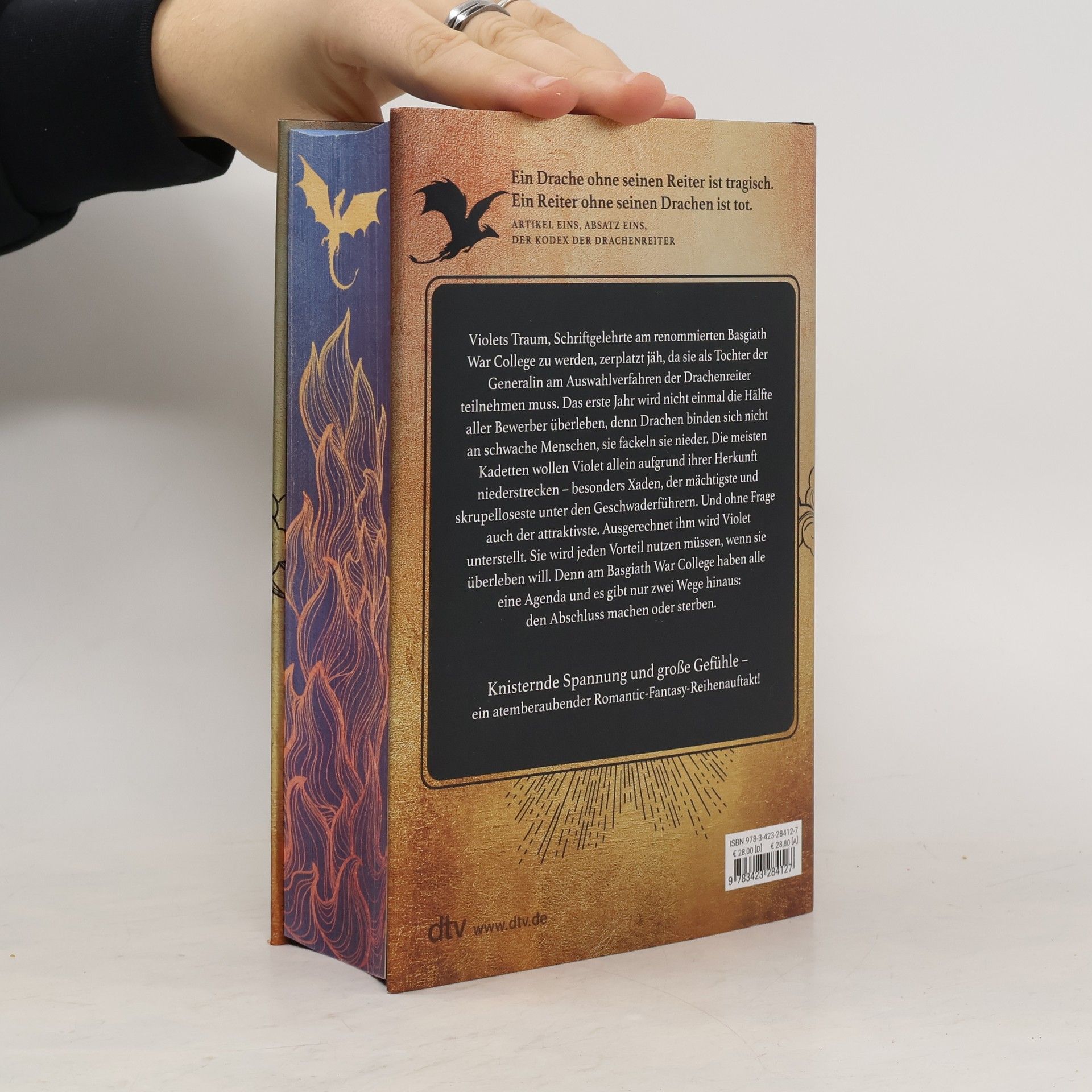 Ein Drache ohne Reiter ist tragisch, ein Reiter ohne Drachen ist tot. In dieser opulenten Deluxe-Ausgabe von ›Fourth Wing‹ erwartet die Leser ein atemberaubendes Fantasy-Abenteuer. Violet, die Schriftgelehrte am Basgiath War College, sieht ihren Traum, dort zu studieren, in Gefahr, als sie als Tochter der Generalin am Auswahlverfahren der Drachenreiter teilnehmen muss. Die Überlebenschancen sind gering, denn Drachen wählen keine schwachen Menschen – sie vernichten sie. Viele Kadetten wollen Violet aufgrund ihrer Herkunft ausschalten, insbesondere Xaden, der mächtigste und skrupelloseste Geschwaderführer, dem sie zugeteilt wird. Um zu überleben, muss Violet alle Vorteile nutzen, die ihr zur Verfügung stehen. Am Basgiath War College verfolgen alle ihre eigenen Ziele, und es gibt nur zwei Auswege: den Abschluss oder den Tod. Diese Geschichte bietet knisternde Spannung und große Emotionen und ist der Auftakt zu einer fesselnden Romantic-Fantasy-Reihe. Die Folgebände sind nicht unabhängig lesbar. Rebecca Yarros erschafft beeindruckende Drachen, während die Leser in ein unvergleichliches Abenteuer eintauchen, das sie nicht mehr loslässt.