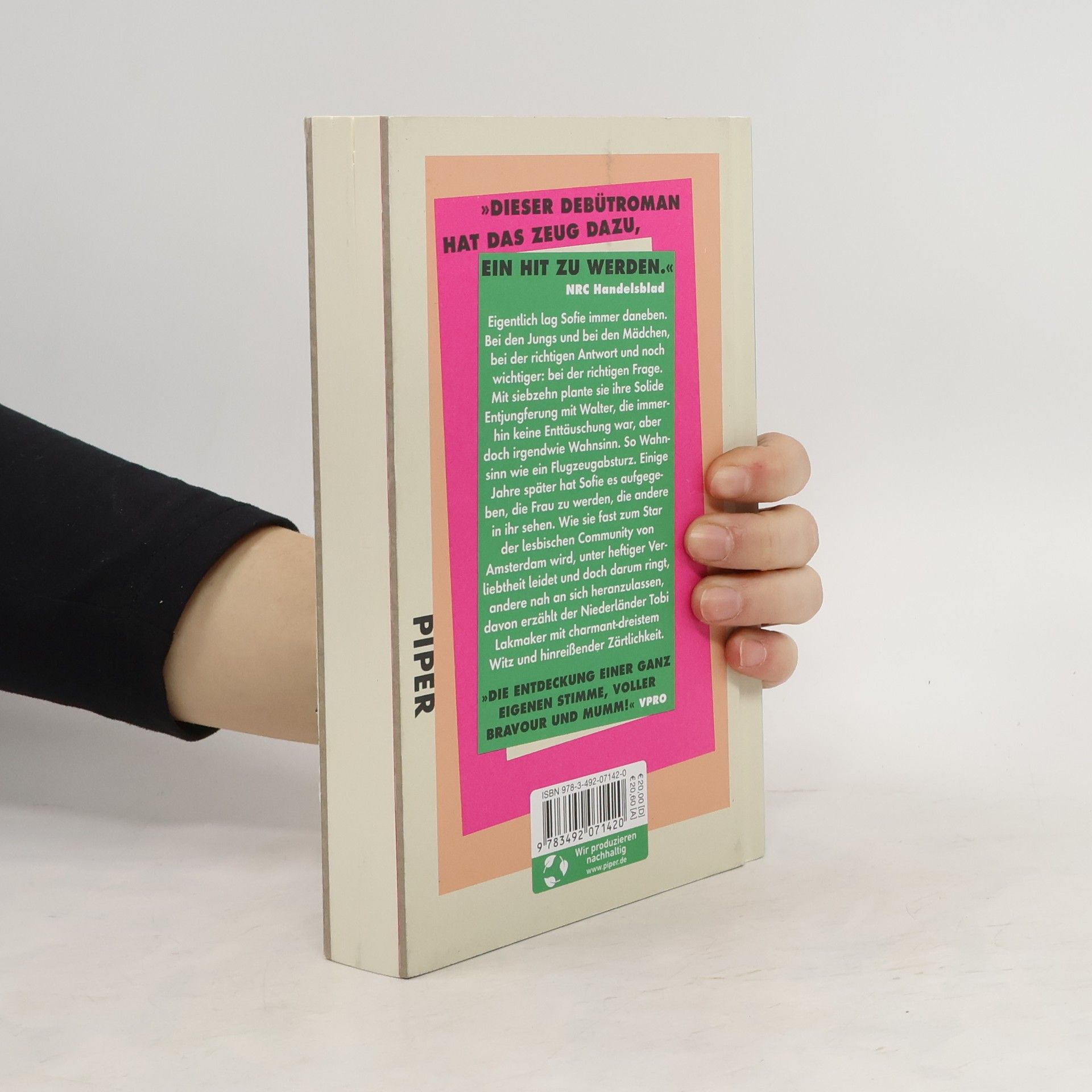 »Dieser Debütroman hat das Zeug dazu, ein Hit zu werden.« NRC Handelsblad »Das neue literarische Talent 2021« Vogue Eigentlich lag Sofie immer daneben. Bei den Jungs und bei den Mädchen, bei der richtigen Antwort und noch wichtiger: bei der richtigen Frage. Mit siebzehn plante sie ihre Solide Entjungferung mit Walter, die immerhin keine Enttäuschung war, aber doch irgendwie Wahnsinn. So Wahnsinn wie ein Flugzeugabsturz, überwältigend und nicht so richtig gut. Einige Jahre später hat sie es aufgegeben, die Frau zu werden, die andere in ihr sehen. Sie trägt die Haare raspelkurz, schwärmt für Jennifer, Muriel und Frida. »Ein Debüt, wie man es selten erlebt. Die Entdeckung einer ganz eigenen Stimme, voller Bravour und Mumm!« Ruth Joos, VPRO Wie Sofie fast zum Star der lesbischen Community von Amsterdam wird, unter heftiger Verliebtheit leidet und doch darum ringt, andere nah an sich heranzulassen, davon erzählt Tobi Lakmaker in seinem gefeierten Debütroman. Mit charmant-dreistem Witz und hinreißender Zärtlichkeit schreibt er von den Räumen zwischen Weiblichkeit und Männlichkeit, von queerer, fluider und Trans-Identität – und davon, dass wahre Intimität dort beginnt, wo wir alle Kategorien vergessen. »Wenn Sie mich fragen, stößt Lakmaker Sally Rooney vom Thron.« Jozedien van Beek, De Standaard »Beißend, witzig und manchmal traurig, mit einem Touch Salinger.« De Morgen