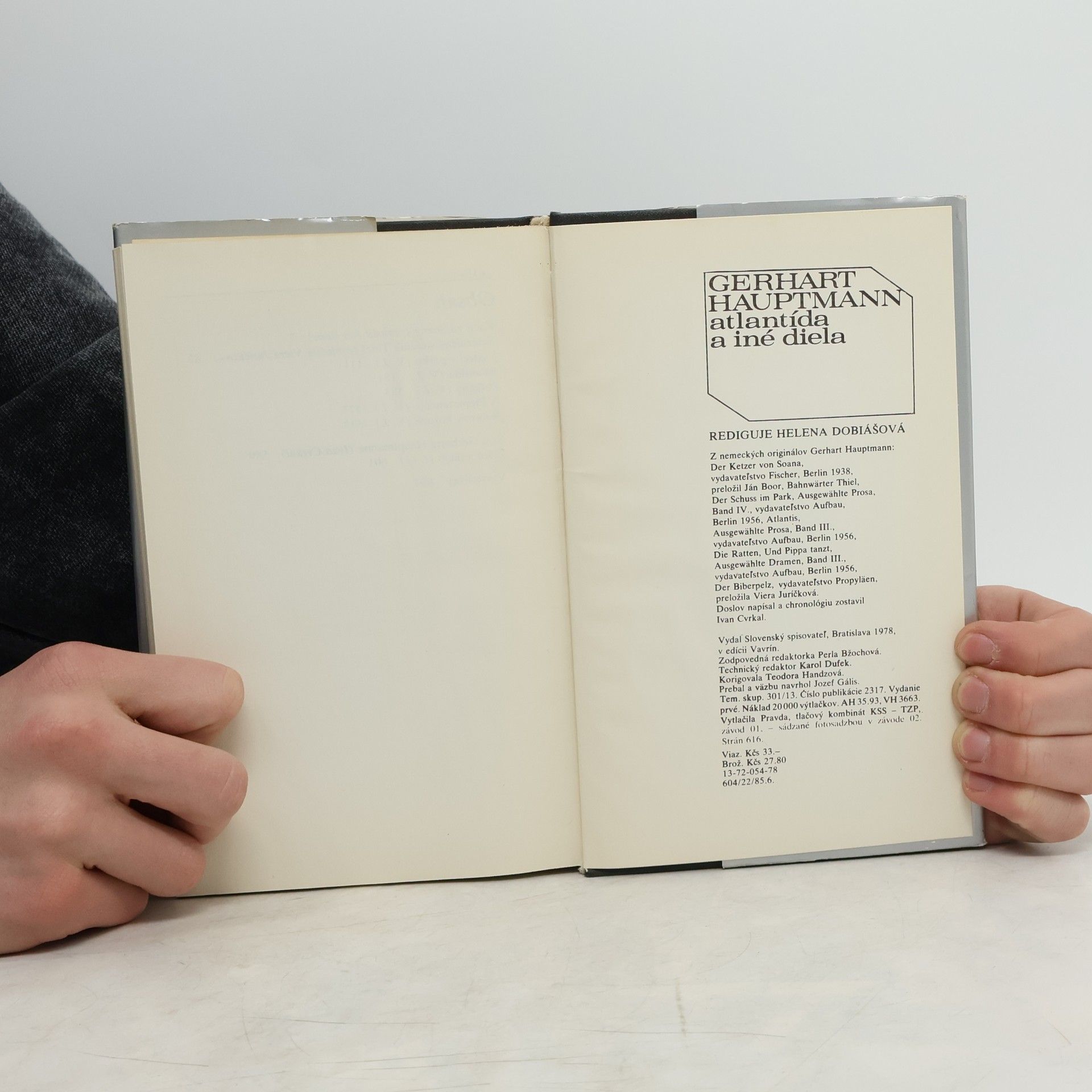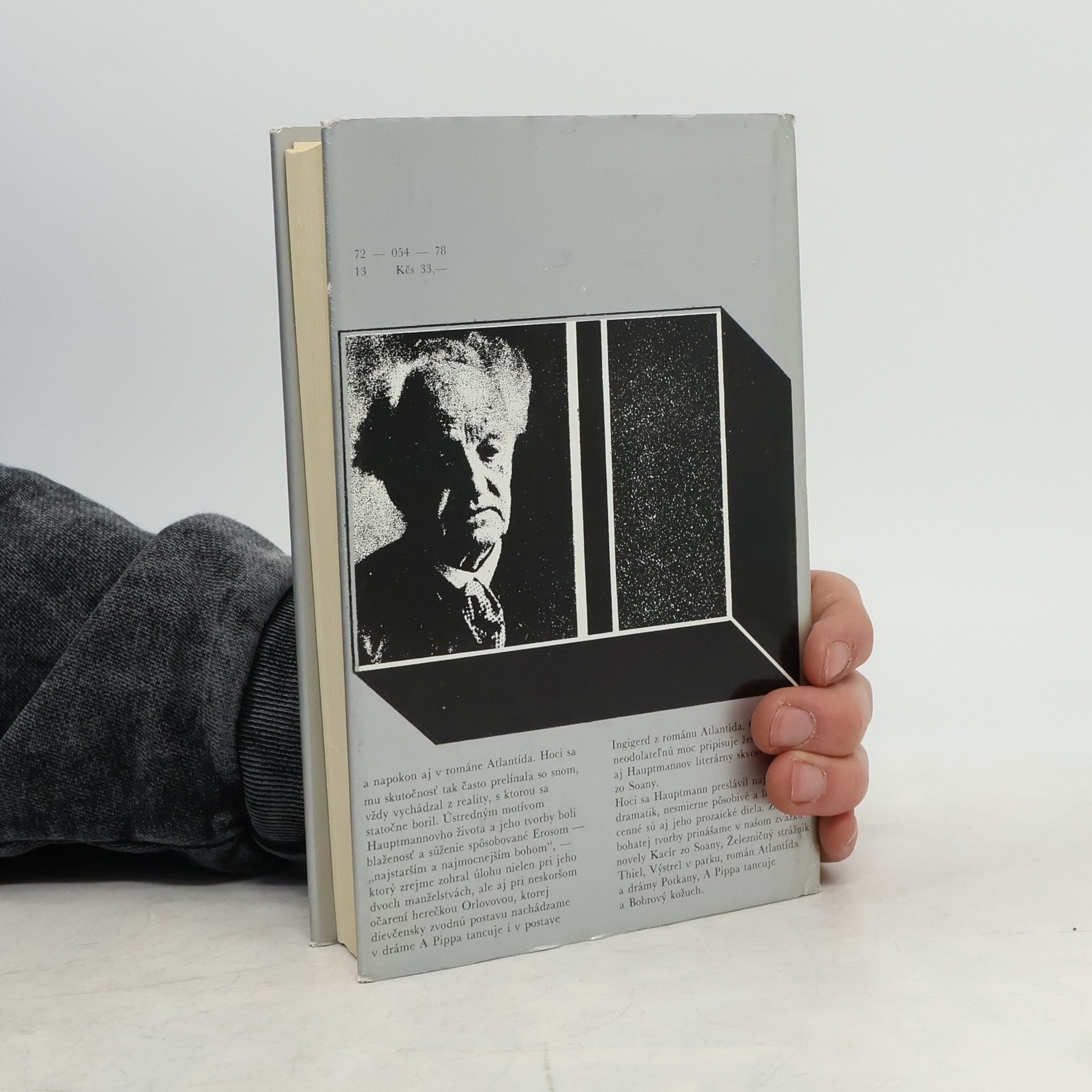 "Kto pri letných potulkách na pobreží NDR zablúdi na ostrovček Hiddensse, iste nájde aj dedinku Kloster, kde Gerhart Hauptmann mal letné sídlo a kde ho roku 1946 aj pochovali. Prostý žulový balvan nad jeho hrobom priliehavo symbolizuje život a tvorbu tohto nemeckého reprezentanta svetovej literatúry... ...Hoci sa Hauptmann preslávil najmä ako dramatik, nesmierne pôsobivé a literárne cenné sú aj jeho prozaické diela. Z jeho literárnej tvorby prinášame v našom zväzku novely Kacír zo Soanny, Železničný strážnik Thiel, Výstrel v parku, román Atlantída a drámy Potkany, A Pippa tancuje a Bobrový kožuch." (Z anotácie na prebale).